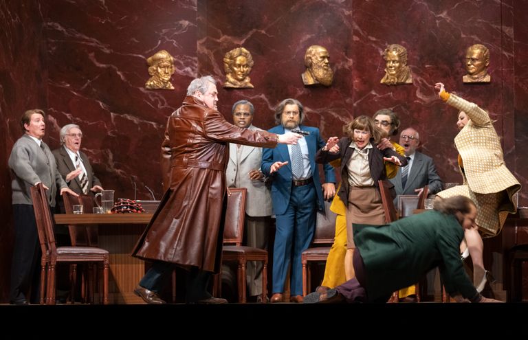 Nel Rheingold Dmitrij Černjakov ci anticipa la visione unitaria che ha voluto dare all’intero ciclo, una lettura coerente con le altre sue produzioni e nello stesso tempo genialmente personale. Si tratta della saga di una famiglia in abiti moderni, qui negli idiomatici anni ’70 disegnati da Elena Zaytseva, un dramma multigenerazionale di lotta per il potere. Qui è anche in gioco il pericolo di giocare a fare il dio creatore e la coscienza dei limiti della conoscenza scientifica.