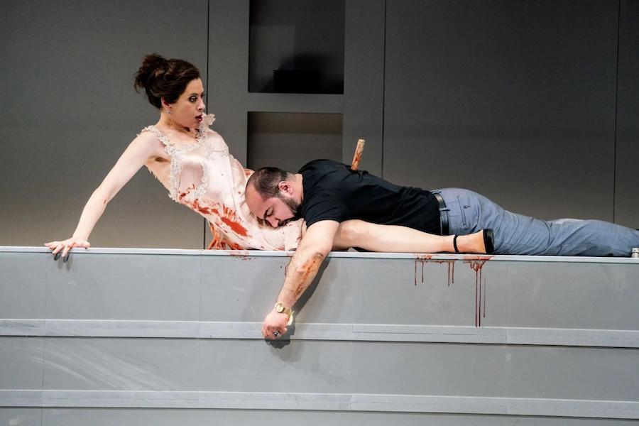 La compagnia di canto è all’altezza della situazione, a iniziare dalla vivace Bombon di Maritina Tampakopoulos dalla potente voce che svetta negli acuti, o dalla Nela di Francesca Sassu che risolve con grande sensibilità la parte della donna che vede infranto il suo sogno d’amore. In questo contesto di suoni delicati e leggeri non poteva starci un tenore stentoreo e squillante e Norman Reinhardt delinea alla perfezione Hans, incerto tra l’amore “sicuro” della moglie e il fascino della donna “bibelot”, dal «corpetto a calice di fior» di Nela. Il tenore americano ha sostituito con poco preavviso Paolo Fanale, l’interprete inizialmente previsto, e si può comprendere il suo non perfetto adattamento alla lingua e conseguente non ineccepibile dizione, ma dal punto di vista musicale riesce a risolvere il suo ruolo con seducenti mezze voci. Sia nei momenti solistici sia nei duetti con Francesca Sassu si apprezzano l’eleganza di stile e il timbro particolare. Silvia Regazzo presta la sicura voce di mezzosoprano al personaggio di Ethel, la moglie del capitano Hans, mentre come La Gaffe Matteo Macchioni esibisce una qualità vocale di tutto rispetto e uno spirito umoristico esemplare. Negli altri ruoli parlati si sono distinti gli attori Stefano Bresciani (Attanasio), Fabio Rossini (Tarquinio) e Pasquale Buonarota (Basilio), i tre mariti noiosi. Federico Vazzola en travesti è stato un’esilarante ma sempre misurata Pomerania. Perfetto il coro del teatro barese nei molti momenti in cui è previsto.