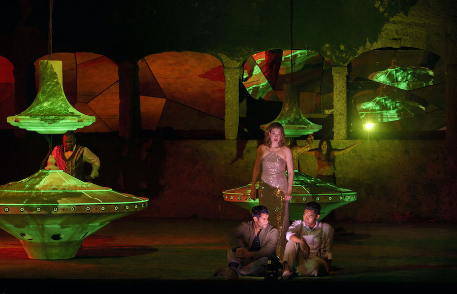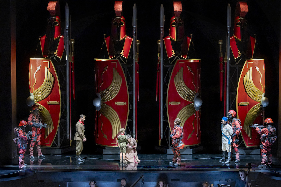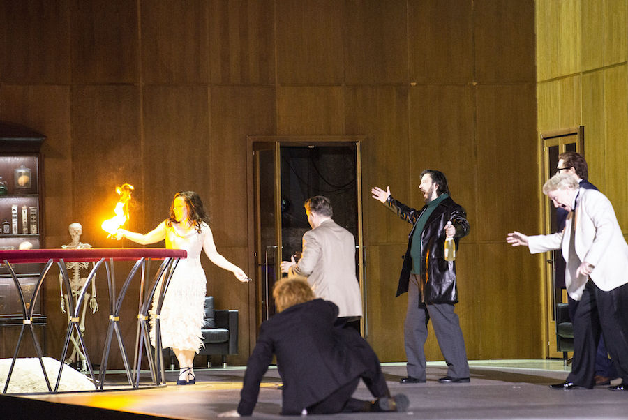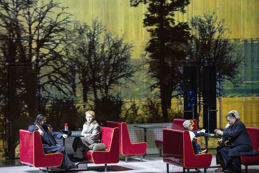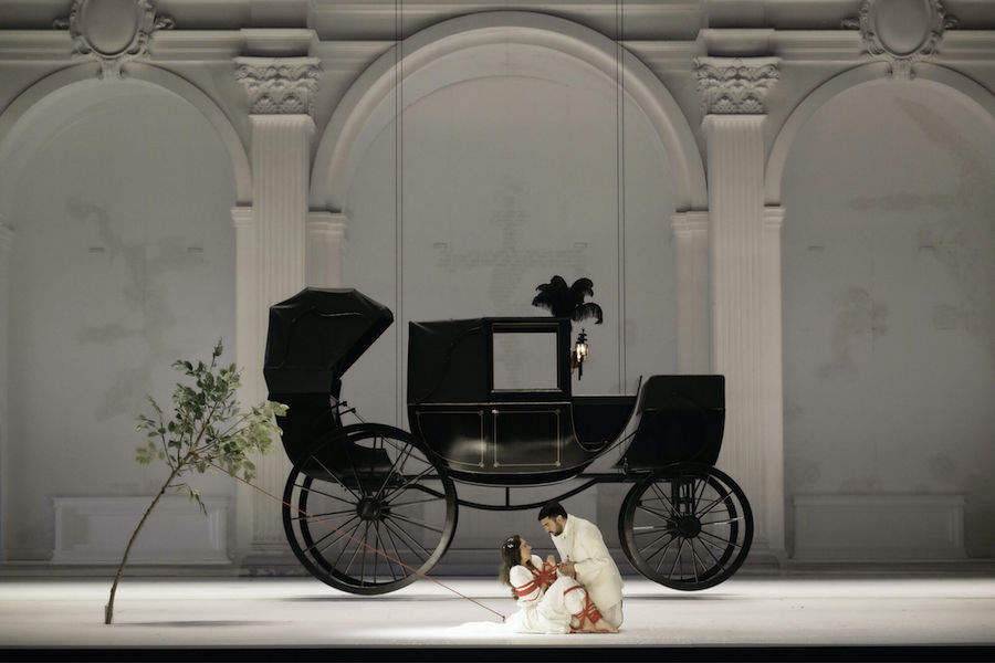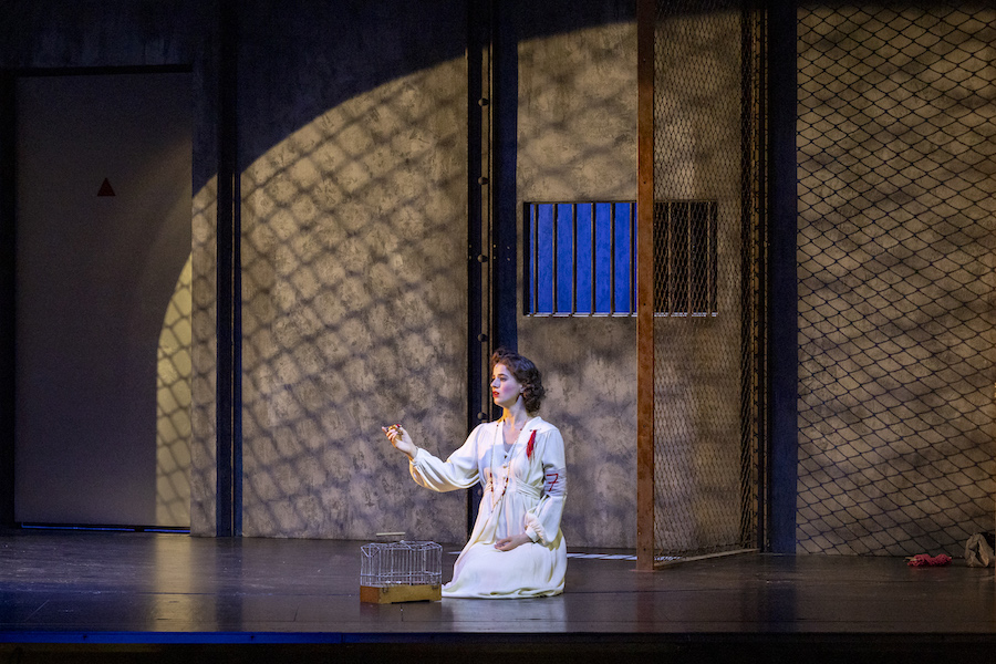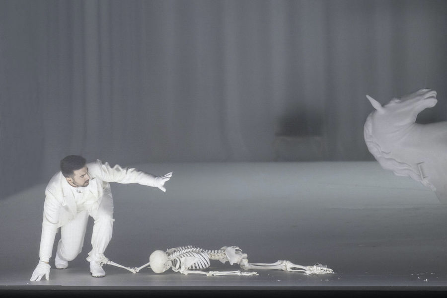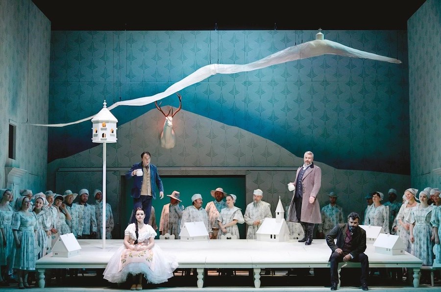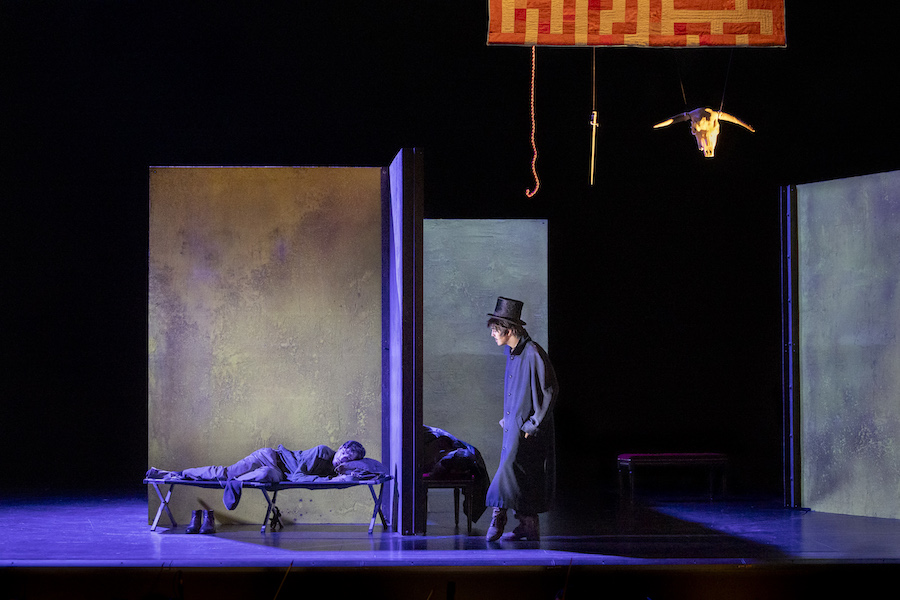 Nell’opera di Weinberg i cantanti non hanno a disposizione arie o ariosi, tutto è affidato a un canto declamato e di conversazione e alla qualità attoriali degli interpreti che sono adeguatamente guidati dal regista, com’è il caso del viscido e inquietante Lebedev, anche prestigiatore e onnipresente in scena, a cui il baritono ucraino Iurii Samoilov presta la sua sorprendente personalità. Personalità che non manca neppure a Ausrine Stundyte, una intensa Nastas’ja Filippovna, in cui il soprano lituano ha sviluppato un suo particolare stile espressivo perfettamente consonante con il personaggio di femme fatale, ma anche fragile donna che sarà uccisa dal suo uomo. Un vero tour de force è quello di Bogdan Volkov, tenore russo di bellissimo timbro e grande resistenza in quanto quasi sempre in scena nella sofferta parte del titolo. Il ruvido personaggio di Rogožin trova un efficace interprete nel baritono bielorusso Vladislav Sulimskij. Il basso inglese Clive Bayley e il mezzosoprano russo Margarita Nekrasova formano la coppia degli scafati Epančin, la cui figlia Aglaja deve al mezzosoprano australiano Xenia Puskarz Thomas le noti dolenti della “ballata del cavaliere povero”. Ben caratterizzato vocalmente e attorialmente il Ganja del tenore slovacco Pavol Breslik, mentre il tenore ucraino Alexander Kravets dà voce al surreale personaggio dell’arrotino, un’invenzione del librettista.