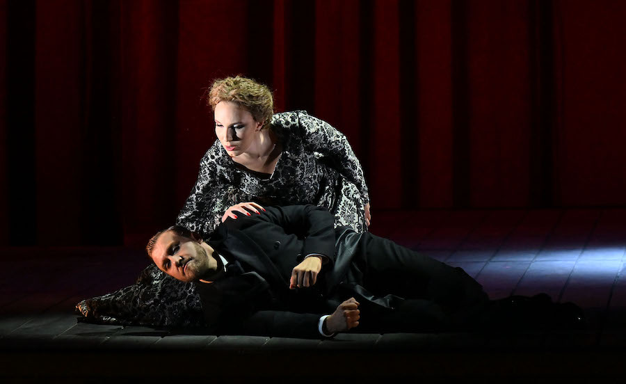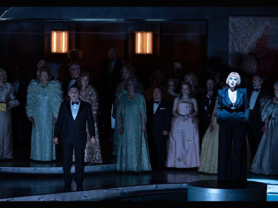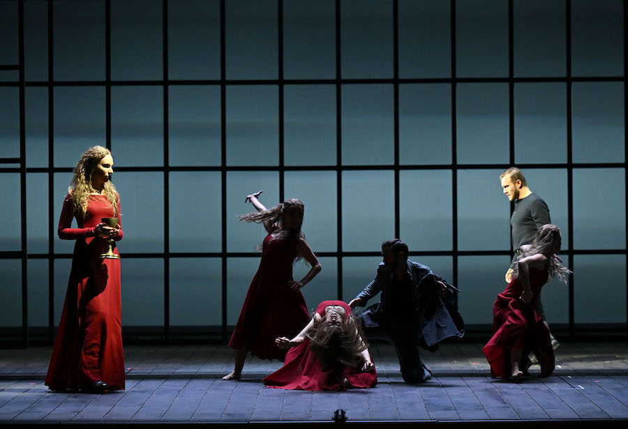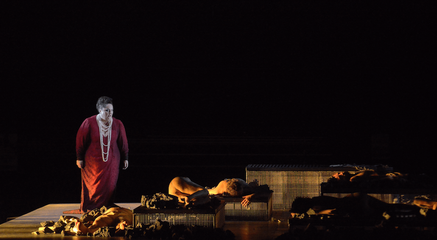Solo due le interpreti femminili. Ifigenia e Diana sono qui cantate entrambe da Jasmin Delfs ma lo sdoppiamento del ruolo di Ifigenia con un’attrice muta, le cui parole sono affidate a Diana, è stato forse emotivamente alienante e il canto di grande purezza del soprano americano, anche se perfettamente equilibrato e preciso, ha rivelato una certa freddezza. Clitennestra ha la voce di Mary-Ellen Nesi, spesso ammirata in questo repertorio, ma qui la sua imponenza vocale non è pari a quella della sua matronale acconciatura anche se il personaggio, diviso tra regalità e compassione per la figlia, è complessivamente ben delineato.