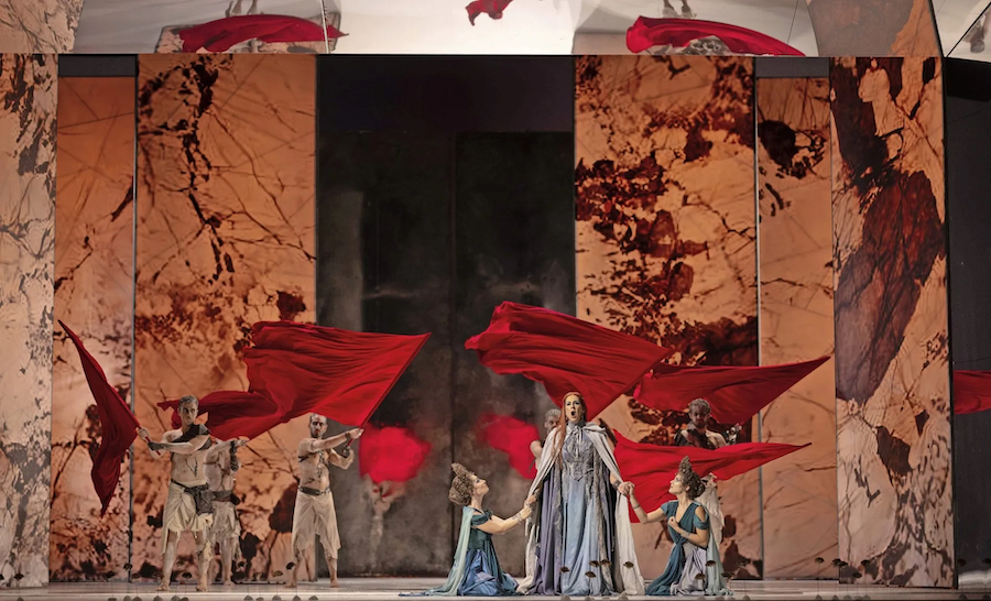 Iniziato con un’opera di Porpora, Carlo il Calvo, nel 2020 in piena pandemia da Covid, il Bayreuth Baroque Opera Festival alla sua quinta edizione si è rivelato tra i più interessanti festival lirici del mondo e lo dimostra anche quest’anno con un’altra gemma del passato. Porpora è un compositore che si spinge oltre i confini del virtuosismo vocale, sfruttando appieno le infinite capacità della voce umana e ce ne fornisce ulteriore prova in questa Ifigenia in Aulide affidata per la concertazione a Christophe Rousset al clavicembalo e alla guida de Les Talens Lyriques, orchestra in residence del festival quest’anno. Il suo approccio privilegia l’aspetto musicale-drammatico più che catturare l’attenzione con contrasti estremi di timbri, tempi ed effetti speciali isolati. In Porpora gli strumenti interagiscono con le voci, non sono un mero accompagnamento della linea vocale e Rousset con il suo prezioso ensemble sostiene alla perfezione le acrobazie canore dei cantanti. E che acrobazie! La parte di Achille fu scritta su misura per il Farinelli, la sua ampia tessitura e le agilità inarrestabili che il controtenore Maayan Licht affronta con disarmante facilità e fluidità. Punto forte della serata, il sopranista israeliano si era già fatto notare nell’Alessandro nell’Indie di due anni fa, ma qui nella figure del Pelide – il motore della vicenda, colui che, attraverso il suo amore e la sua forza di persuasione nell’affermare la bontà degli dèi, riesce a cambiare il corso degli eventi e a ribaltare la situazione apparentemente insolubile in cui si trova Agamennone – i suoi acuti stratosferici, la potenza sonora e i tono spavaldo ben si addicono a questo personaggio eroico, tipico dell’opera barocca. Dopo Ifigenia, Achille è quello che ha più arie solistiche, due per ogni atto, più un inconsueto duetto di carattere polifonico, quasi un fugato tra le voci di Achille e Calcante. (1) I suoli interventi vanno dalla esibizione più fantasmagorica di trilli, picchettati e note tenute nell’aria di sortita «Nel già bramoso petto», al languore della famosa «Le limpid’onde». A questo si aggiunga una perfetta dizione a una innegabile espressività recitativa.