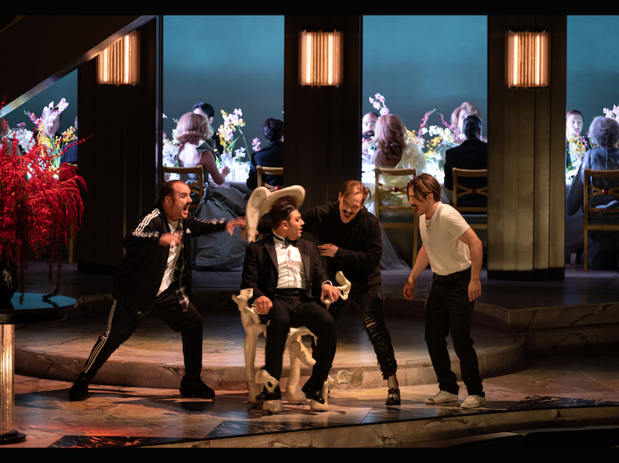 Solo due i numeri solistici, ma memorabili, quelli di Ulisse, affidati a un altro sopranista che si sta facendo strada in questi giorni, Nicolò Balducci, anche lui perfettamente a suo agio nelle colorature scritte da Porpora. Agamennone trova in Max Emanuel Cenčić l’interprete ideale per la complessità del personaggio che delinea con la morbidezza vellutata della voce, i colori caldi e gli accenti drammatici. La tessitura meno acuta del ruolo si rivela adatta ai maturi mezzi vocali del controtenore di cui si ammira anche l’impeccabile gioco scenico e attoriale. Calcante trova in Riccardo Novaro un baritono dal timbro non molto profondo, ma estremamente espressivo.