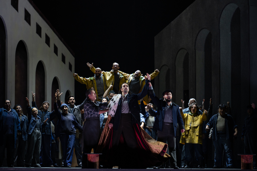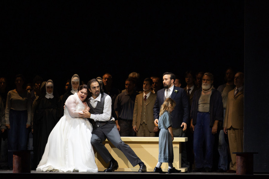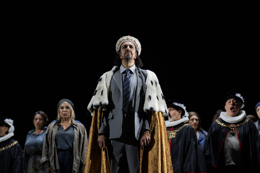 A preludio della vicenda si ascolta la voce di Eduardo nell’introduzione alla versione televisiva del 1964 definire La grande magia «una frattura» nel corpus delle sue opere, «non definitiva ma significativa, per quello che poteva essere un nuovo teatro, un nuovo linguaggio». Un soggetto «un po’ scabroso, assurdo, che procede per simbolismi». Ed è infatti la cifra dell’assurdo a connotare la lettura di Gabriele Russo e la recitazione degli attori di cui il regista preserva le cadenze regionali. Il Marvuglia di Michele di Mauro usa le mille intonazioni della voce in maniera istrionica e virtuosistica per delineare il suo personaggio cinico ma umano, Natalino Basso dà vita al personaggio di Spelta cocciuto nella sua chiusa tragica follia. Tutti efficaci gli altri interpreti: Veronica D’Elia, Gennaro Di Biase, Christian Di Domenico, Maria Laila Fernandez, Alessio Piazza, Manuel Severino, Sabrina Scuccimarra, Alice Spisa, Anna Rita Vitolo. Teatro pieno e successo calorosissimo con innumerevoli chiamate alla ribalta.