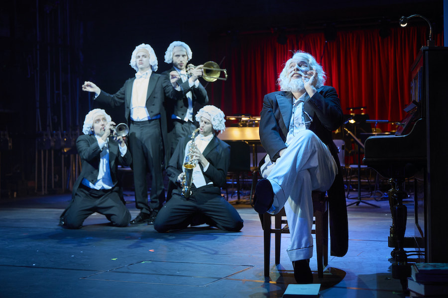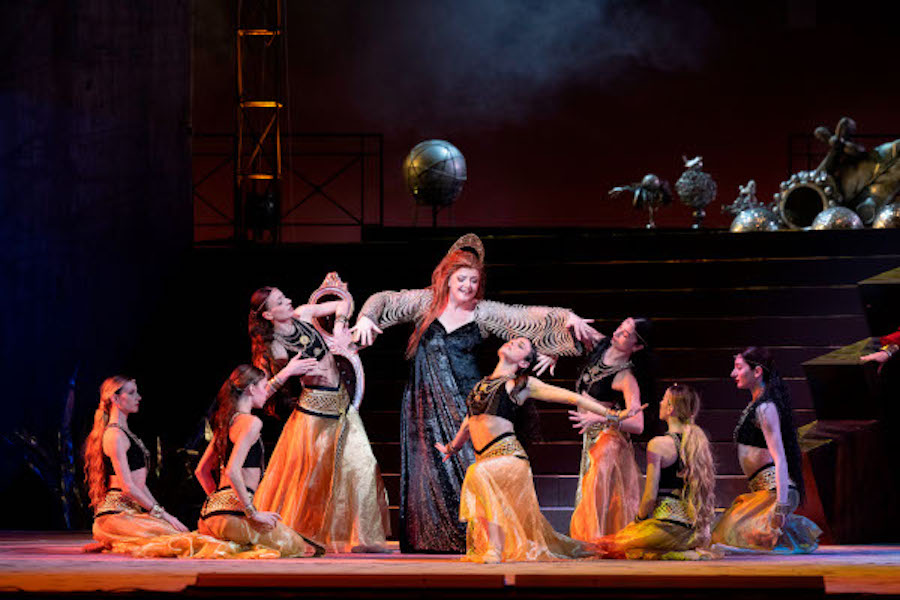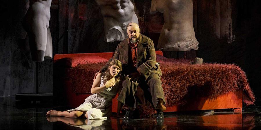Niente da dire invece sul fronte musicale, dove Giovanni Di Stefano alla direzione dell’Orchestra Filarmonica Italiana dà il giusto tono a questa opera seria di Rossini, con i suoi momenti di intimità alternati a quelli più grandiosi, qui ottenuti senza esagerare con la magniloquenza. Ottimo l’equilibrio sonoro con la scena calcata da sicuri professionisti. Primo fra tutti Michele Pertusi che del personaggio del titolo delinea con grande autorevolezza la figura solenne eppure umana. La voce è ancora gloriosamente ben proiettata, la parola magistralmente scolpita come sempre, magnifici i colori e le mezze voci esibiti nei due maggiori numeri musicali di Mosé: l’aria Tu di ceppi, composta da un collaboratore ignoto di Rossini e la meravigliosa preghiera Dal tuo stellato soglio, bissata a furor di popolo. Molto bene l’Elcìa di Aida Pascu (allieva di Rajna Kabaivanska) dal timbro affascinante e dal fraseggio elegante. Brillante e perfettamente a suo agio nella tessitura l’Osiride di Dave Monaco, il personaggio portato al successo nel Rossini Opera Festival del 1985 da Rockwell Blake. Statica scenicamente e abbastanza monotona vocalmente, Mariam Battistelli risolve invece efficacemente la sua aria con coro La pace mia smarrita, su musica del Ciro in Babilonia. Grande attenzione alla parola anche per il Faraone di Andrea Pellegrini. Particolarmente squillante l’Aronne di Matteo Mezzaro, mentre Angela Schisano e Andrea Galli si distinguono nelle parti secondarie di Amenofi e Mambre. Ottima prova quella fornita dal Coro Lirico di Modena istruito da Giovanni Farina.