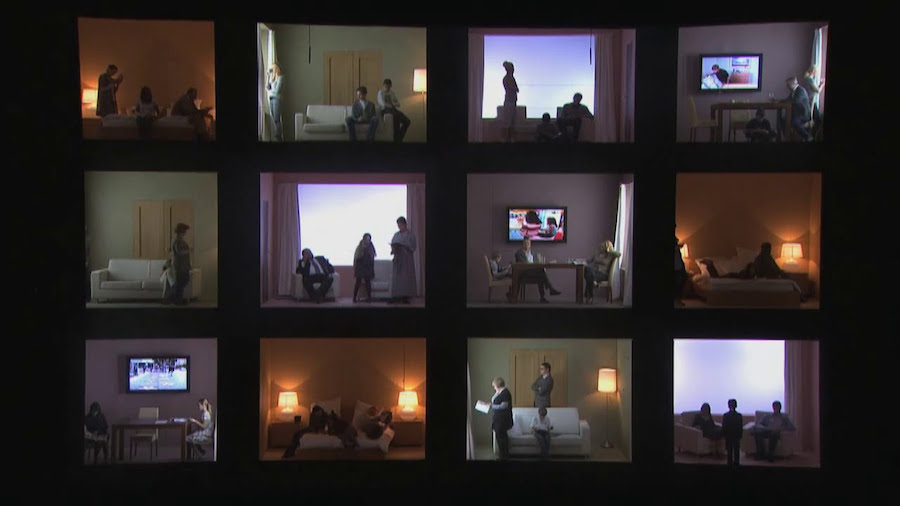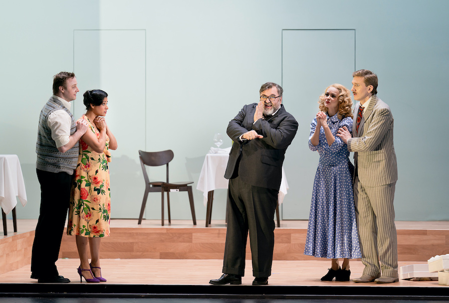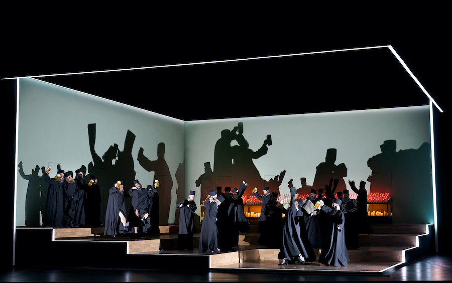 La sua modernità è esaltata dal regista Davide Livermore che ambienta la vicenda mitologica su un’isola del Mediterraneo del secondo dopoguerra, «un’Itaca sospesa nel dopoguerra, intrisa del profumo del mare e del ricordo di un mondo antico. Una realtà livida e polverosa che sembra uscita dal cinema neorealista di Rossellini e Visconti» scrive nelle note di regia Livermore. Ed è infatti a Stromboli o a La terra trema, ma anche a Mediterraneo di Salvatores, che si pensa vedendo la scenografia di Eleonora Peronetti e i costumi di Anna Verde che costruiscono un mondo in cui «il tempo si fa attesa ritmata dalla risacca del mare e dal vento e scandisce la ripetizione di gesti, lo scorrere lento della quotidianità» e dove «l’isola è una crasi geografica di memorie mediterranee». Le luci di Antonio Castro e soprattutto le proiezioni della D-WOK, quanto mai giuste ed essenziali in questo spettacolo, forniscono il supporto visivo alla definizione di un lembo di terra in attesa di un futuro che si spera migliore. Cinematografico non è solo il taglio visivo, cinematografica è anche la sciolta recitazione dei cantanti/attori, tale da rendere moderna sceneggiatura l’austero testo del Badoaro. Il tutto grazie a un cast di eccellenze che vede nei due protagonisti principali le memorabili interpretazioni di Mauro Borgioni e Margherita Maria Sala. Il primo, esperto indiscusso di questo repertorio, delinea un Ulisse di grande autorità vocale, splendida dizione e fraseggio scultoreo, unitamente a elegante presenza scenica. La seconda, Penelope, è una meraviglia di intenzioni espressive, sontuosità vocale, timbro risonante e caldo. Con il braccio al collo per un infortunio durante la prova generale, ha stoicamente portato a termine la sua performance senza che neanche un momento denunciasse l’accaduto. Una encomiabile prova di professionalità. Uno dei pochi cantanti non di lingua italiana è Jacob Lawrence, che oltre alla perfetta pronuncia ha esibito sicurezza ed efficace presenza scenica nel suo Telemaco in pantaloni corti e ricci fulvi. Pieno di tenerezza il bellissimo duetto col padre, una pagina memorabile che qui chiude la prima delle due parti in cui sono stati divisi i cinque atti del libretto.