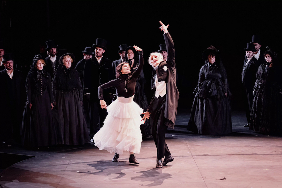 E poi la danza: Julie Dariosecq ed Elsa Tagawa trasformano il valzer del primo atto in un cabaret di Montmartre, mentre la Notte di Valpurga sembra un’incisione di Toulouse-Lautrec, con gambe in aria e colori da Moulin Rouge. Una lettura che non tradisce il libretto, se non in un dettaglio che però fa discutere: il figlio illegittimo di Marguerite, altro che neonato! È un ragazzino di sette anni in carne ed ossa. Lo vediamo soffocato dall’abbraccio materno ed è lui, non Marguerite, a ricevere alla fine l’aureola di luce.