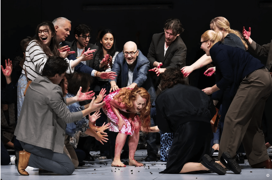 Atto II. Il periodo tra le due guerre. Lo spazio è immerso in una luce onirica. Gli ospiti, guidati dalla signorina Eva, si preparano per le prove – tra loro c’è anche la contessa, che sta facendo progetti ambiziosi. Kazimierz, mezzo addormentato, osserva una serie di tableaux vivants che gli scorrono davanti agli occhi: una danza di perle, la corte di Nettuno, una parata militare. Valentine e Dzidzi partecipano attivamente ai festeggiamenti, ma Bronia non riesce a trovare il suo posto. Viene annunciato l’arrivo di Madame de Vauban. Che emozione! Kazimierz offre goffamente la mano alla Contessa, strappandole il vestito. L’evento provoca scalpore tra gli ospiti.