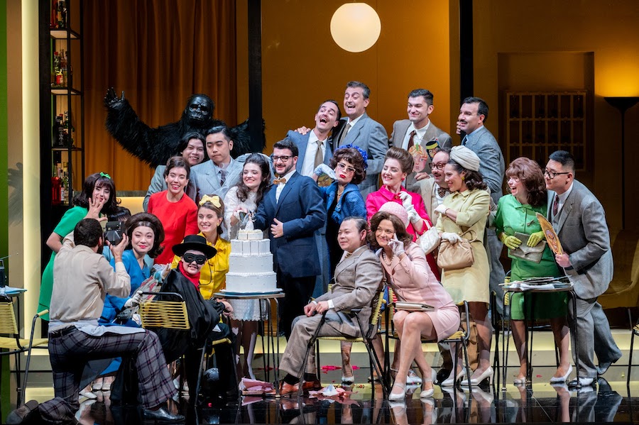 La presenza di un artista come Alessandro Corbelli si inserisce con naturalezza in questo cast giovanile con la sua impeccabile linea vocale, la magistrale attenzione alla parola e il sornione umorismo con cui costruisce il personaggio del primo marito, ora in tenuta da Davy Crockett e in attesa di convolare a seconde nozze con una canadese, ironicamente presente in scena in questo allestimento. Preciso e vivace il coro dell’Accademia del Teatro alla Scala istruito da Salvo Sgrò.