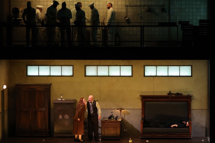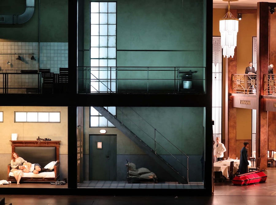 Dopo le provocazioni napoletane, il regista russo al suo debutto alla Scala sembra abbia scelto una via più misurata che non ha turbato neppure il loggione – vabbè, non era Verdi… Niente scandalo gratuito, ma un sottile discorso sul protofemminismo di Katerina, letta come vittima di un mondo chiuso e corrotto. Tuttavia, la regia non è priva di difetti: troppi personaggi in scena, troppe controscene che intasano lo spazio e attenuano il senso di isolamento e noia esistenziale della protagonista. Il ristorante déco, elegante e affollato, riduce l’asfissia che dovrebbe dominare la storia. È una regia intelligente, astuta, visivamente accattivante, ma più “furba” che rivelatrice: non aggiunge molto alla nostra comprensione di Šostakovič, ma accompagna con mestiere l’evento mondano per eccellenza.