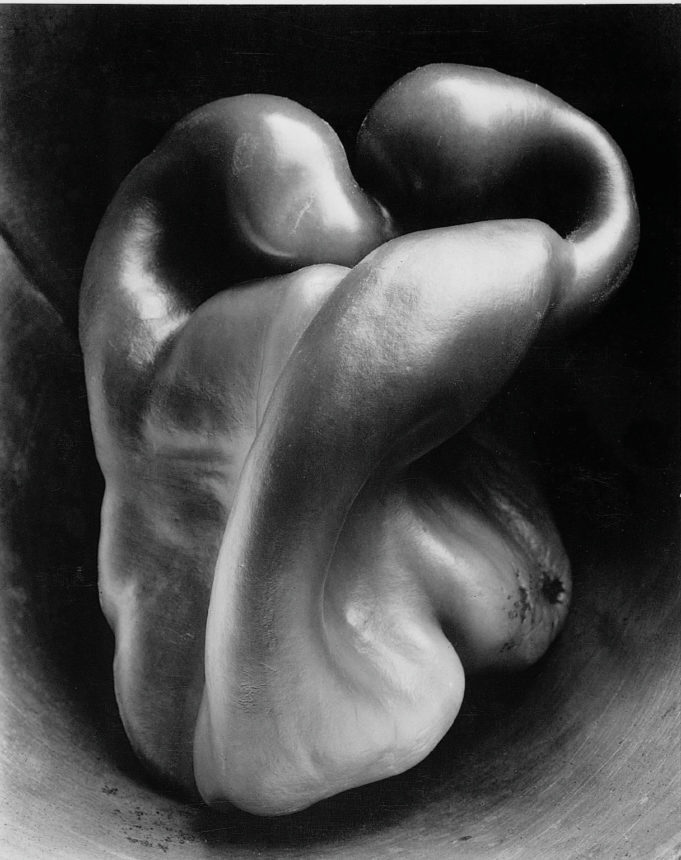 Dopo l’esperienza messicana nascono le celebri serie di nudi, in cui il corpo umano è pensato anzitutto come forma. Weston sottrae il nudo a ogni tentazione narrativa o psicologica: la sensualità scaturisce dal dialogo tra linee, volumi, curve e ombre. Il corpo diventa paesaggio, architettura, ritmo visivo. Parallelamente, a partire dal 1927, Weston si dedica alle nature morte, terreno privilegiato della sua indagine sulla struttura interna delle cose. Conchiglie, peperoni, rocce, foglie vengono isolati, studiati, trasfigurati in composizioni di abbagliante intensità plastica. Il celebre Peperone n. 30emerge come emblema di questa poetica: un’immagine in cui il dato reale si apre a una lettura quasi astratta senza perdere la propria concretezza tattile. Non è un caso che, cinquant’anni più tardi, Robert Mapplethorpe riconoscerà in Weston un antecedente decisivo per le sue fotografie di fiori, dove eros e forma si fondono in un equilibrio magnetico.