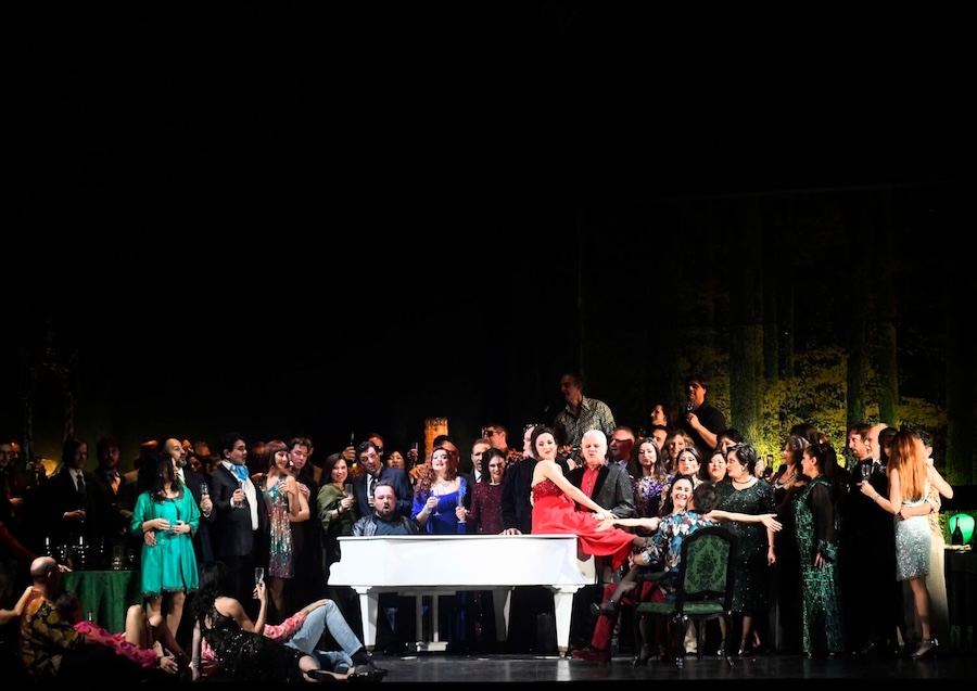 In questo contesto, Violetta emerge come figura di straordinaria complessità. Non più soltanto eroina romantica o vittima melodrammatica, ma donna pienamente consapevole del proprio ruolo all’interno di una società che misura tutto – affetti compresi – secondo parametri di convenienza, prestigio, rispettabilità e denaro. Carsen costruisce attorno a lei un universo in cui lo sguardo collettivo assume un peso determinante: osservare equivale a giudicare, e giudicare significa, inevitabilmente, condannare.