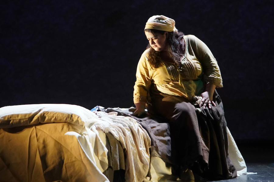 In questo quadro, il ruolo di Maurya emerge come vero fulcro dell’opera, un banco di prova tanto tecnico quanto interpretativo. Alla prima piacentina, Caterina Meldolesi ne ha offerto un’interpretazione di grande intensità, affrontando con sicurezza una scrittura impervia e restituendo con rara efficacia la complessità emotiva del personaggio. La sua è una presenza scenica totalizzante, capace di sostenere un arco drammatico continuo senza cedimenti, fino a una scena finale in cui voce e teatro trovano una sintesi di notevole forza espressiva.