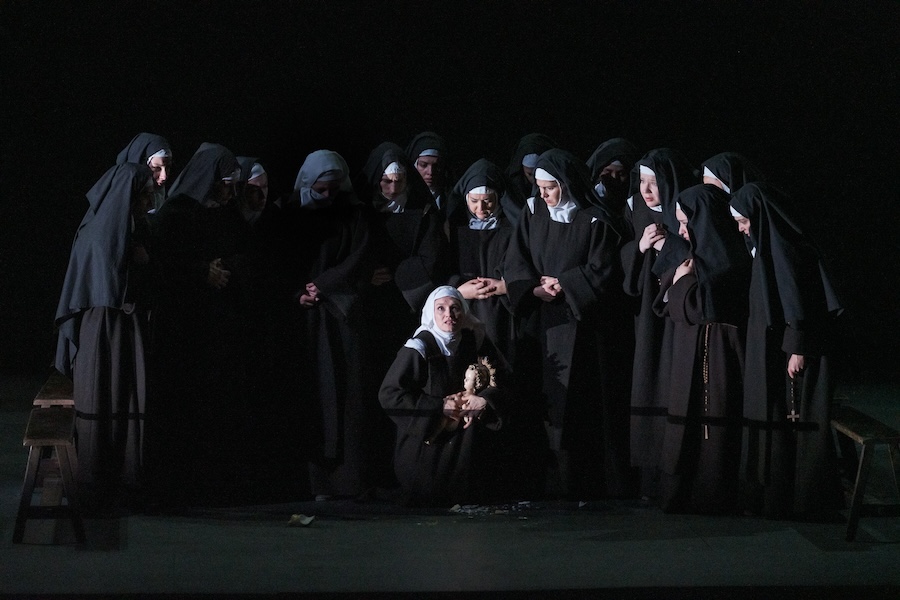 Rimangono molti altri personaggi da citare, non meno importanti, a cui hanno fornito la loro efficace presenza i mezzosoprani Antoinette Dennefeld (la vice Priora Mère Marie de l’Incarnation) e Lorrie Garcia (la decana Jeanne de l’Enfant); i tenori Krystian Adam (il cappellano) e Matthieu Justine (primo commissario); i baritoni Isaac Galán (carceriere e secondo commissario) e Roberto Accurso (un ufficiale e il servitore Thierry); Martina Myskohkid (Soeur Mathilde) e Eduardo Martinez (il medico Monsieur Javelinot), questi ultimi due artisti del Regio Ensemble. Prezioso com esempre l’apporto dei maestri del coro del teatro istruito da Gea Garatti Ansini.