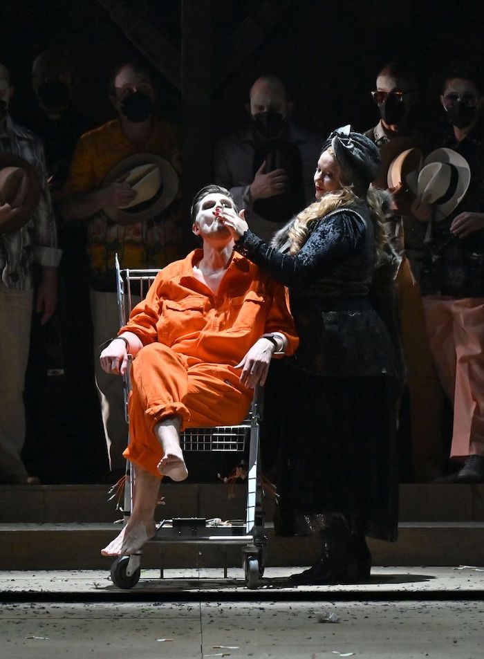La musica di Salieri è molto ben costruita, con attenzione ai particolari colori degli strumenti e al trattamento delle voci, ma forma una specie di continuum ritmico che a lungo andare genera una certa monotonia, che la direzione corretta ma senza guizzi di Nikolas Nägele non tenta di alleviare. Molto interessanti sono le improvvisazioni al clavicembalo di Jeong Un Kim che qui accompagnano le esibizioni dell’invadente ballerino. E soprattutto resta la bellezza di certi numeri musicali magistralmente costruiti in cui la dicotomia recitativo-aria viene superata per realizzare delle vere e proprie scene complesse e di indubbia efficacia teatrale.