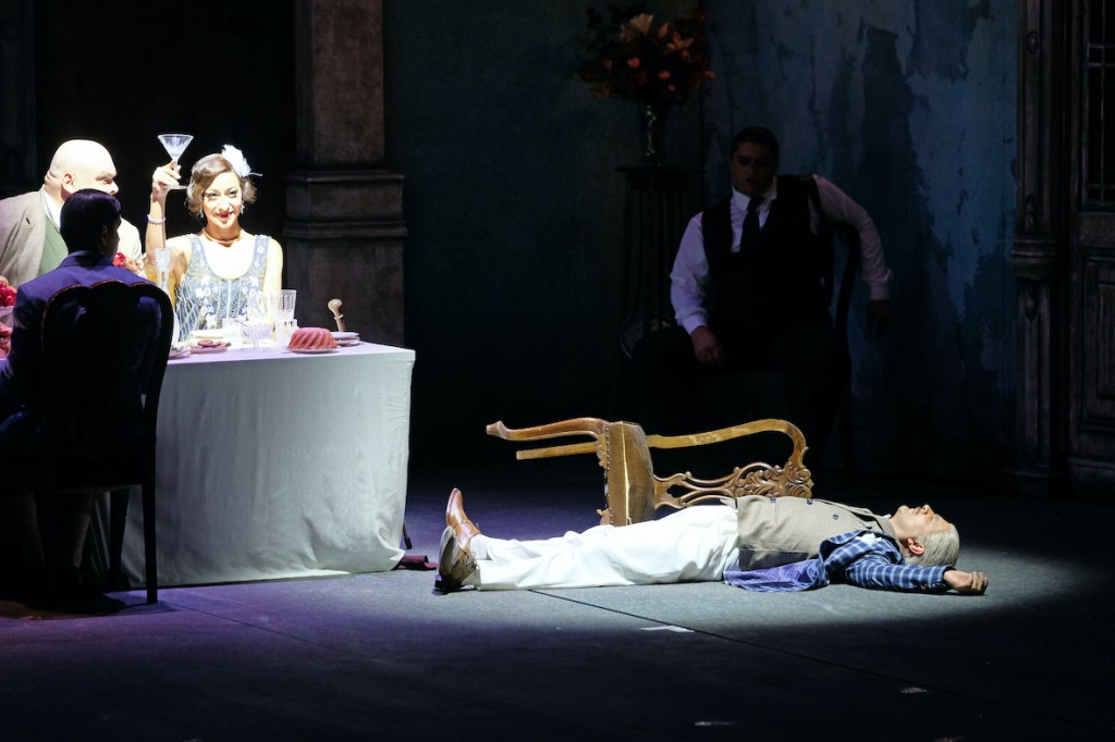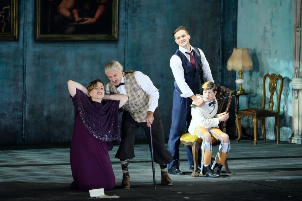 Un certo humour macabro pervade la lettura di Cenčić: durante la prima parte dell’ouverture tripartita, a una grande tavolata dove la famiglia è riunita, vediamo accasciarsi morto Ludovico, mentre la vecchia in carrozzella scoppia in una scomposta sghignazzata. Simmetrica sarà l’ultima scena: stessa tavola, ma stavolta a lasciarci le cuoia è Lottario stesso.