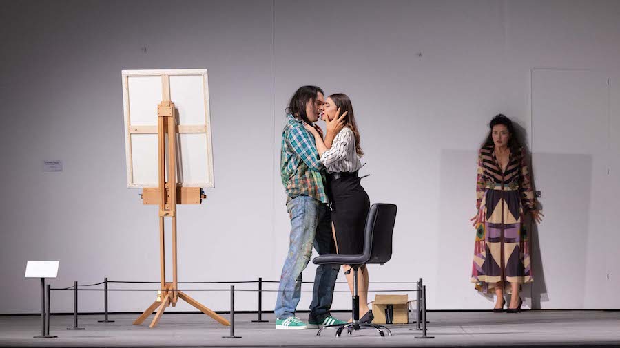 Coprodotta con il Theater an der Wien, arriva al Piermarini la produzione affidata a Laurent Pelly, che a Lione de Le convenienze ed inconvenienze teatrali donizettiane aveva fatto uno spettacolo indimenticabile. Qui la musica è tutt’altra cosa e la drammaturgia piuttosto latitante, i battibecchi fra primedonne, compositore e poeta ripetitivi e il testo non particolarmente brillante. Soprattutto, manca la Mamm’Agata che irrompe con tutto il suo ingombro fin dal primo atto nell’opera di Gilardoni e Donizetti. Qui le madri delle cantanti sono ben tre, ma si presentano solo alla fine e con ruoli limitati.