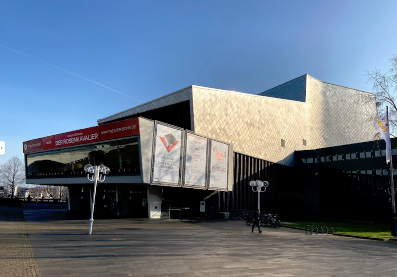 Il teatro fu distrutto da un bombardamento durante la seconda guerra mondiale nel luglio 1943. Dopo la seconda guerra mondiale, sedi temporanee per il teatro furono una sala universitaria, una palestra, un cinema e il Prachtbau del Bonner Bürgerverein. Nel 1965, un nuovo edificio è stato aperto sul Reno che serve come il teatro d’opera di oggi, lo Stadttheater, ora semplicemente Theater Bonn. L’edificio degli architetti Klaus Gessler e Wilfried Beck-Erlang ha un’aria scultorea e ospita l’auditorium principale (1024 posti) così come la Werkstattbühne (125 posti), un teatro studio più intimo che è usato principalmente per nuove opere teatrali e produzioni sperimentali.