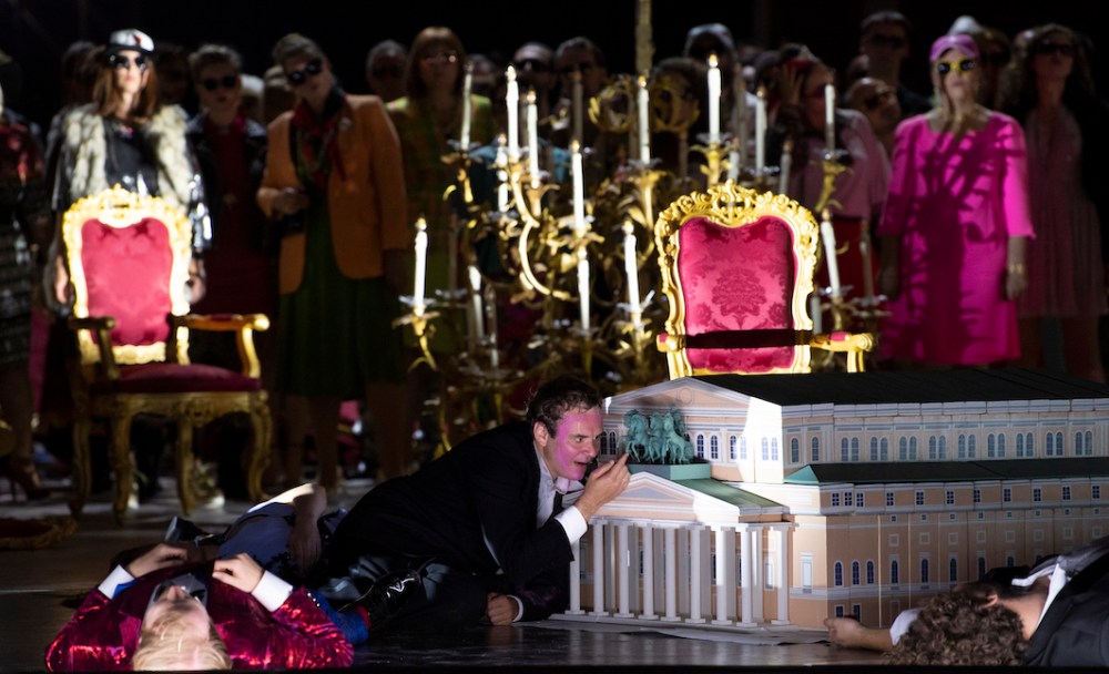 Jean-Yves Ossonce alla guida della Sinfonietta de Lausanne dipana le perle melodiche affidate a un cast eterogeneo: Mathias Vidal è un Léopold un po’ corto di fiato; Fabienne Conrad inizia con fatica ma poi si riprende a delineare una spigliata Josepha; più a suo agio Julien Dran come Mr Guy Florès dal bel timbro e dall’eleganza giusta per questo genere. Sapidi gli interventi degli attori che incarnano Napoléon Bistagne e il Kaiser. Su tutti vola, nel vero senso della parola, lo yodel di Barbara Klossner, alias Miss Helvetia, che ci ricorda che ci troviamo non a caso in Tirolo. Assente ogni riferimento all’epoca della composizione, viene fornito un prodotto che vuole farci molto semplicemente dimenticare i tempi bui in cui viviamo.