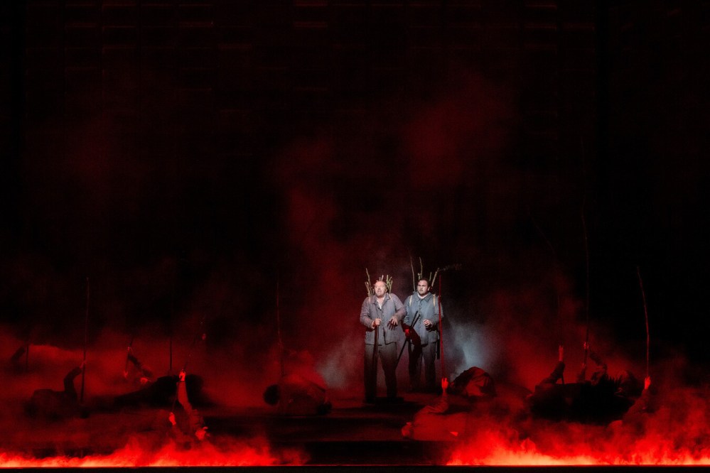 La proposta del regista russo non mette in imbarazzo gli interpreti, anzi nelle interviste si dichiarano a loro agio. Sondra Radvanovsky dichiara che la produzione «è moderna ma a suo modo tradizionale»… Sovente frequentata, la sua Turandot è sicura, potente, espressiva, a tre dimensioni, una vera donna. Peccato per la dizione: le sue prime parole sono infatti «In questa retta, or son mil’anni e mile». Anche lui habitué della parte, Yusif Eyvazov è un Calaf romantico e particolarmente convincente come personaggio, non fa solo sfoggio di acuti e il suo «Nessun dorma» non scatena un meritato applauso a scena aperta solo perché Ettinger prosegue con decisione. Prima però Eyvazov si era preso il suo momento tenendo a lungo la corona sulla prima o di «e all’alba morirò». Timur di lusso è Alexander Tsymbalyuk, re usurpato di grande nobiltà, ma come avviene spesso gli applausi più calorosi del pubblico vanno a Liù, qui una Rosa Feola di grande sensibilità e linea vocale ineccepibile. Meno soddisfacente il terzetto delle maschere di Ping (Roberto de Candia), Pang (Gregory Bonfatti) e Pong (Francesco Pittari). Glorioso Calaf degli anni passati, l’ottantenne Nicola Martinucci dà voce al vecchio imperatore Altoum. Cori impegnati con buoni risultati, sia quello di voci bianche diretto da Stefania Rinaldi, che quello diretto da Piero Monti.