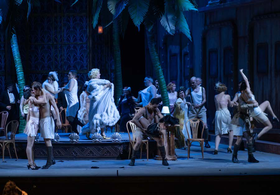 Il perfetto equilibrio tra orchestra e palcoscenico è ancora più ammirevole in questa situazione all’aperto dove non si perde nulla dei suoni emessi dagli strumenti anche nei più esili pianissimi e dove le voci non sono mai coperte nei momenti di maggior intensità sonora. Mirabile anche la chiarezza e la precisione dei tre complessi finali che si ascoltano qui nella loro interezza. Deve essere infatti la prima volta che si può ascoltare nella sua completezza e con questa qualità musicale un lavoro spesso bistrattato da volonterose compagnie di giro o amatoriali. Una riscoperta che incanta per la freschezza di una partitura a cui viene data nuova vita con tale eleganza.