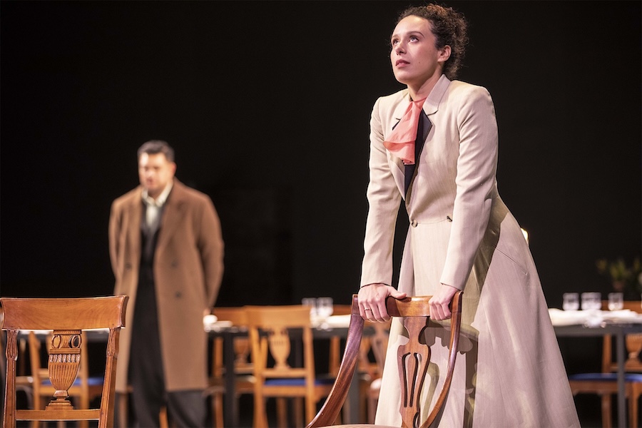 Huffman rinuncia a ogni tentazione illustrativa. La scena è quasi sempre spoglia, abitata da pochi oggetti domestici e da un’azione che si svolge spesso a vista, senza cesure nette. Il principio guida è chiaro: riportare Werther al suo nucleo essenziale, spostando il baricentro sull’interiorità dei personaggi. Alcune scelte – il bacio anticipato fra i due protagonisti o il suicidio privo di pistola – possono apparire discutibili, persino contrarie alla lettera del libretto, ma non compromettono la leggibilità complessiva dell’azione. Anzi, la chiarezza drammaturgica resta intatta, soprattutto per uno spettatore che conosca l’opera, grazie a una direzione d’attori minuziosa, quasi “cinematografica”, che valorizza ogni gesto e ogni silenzio.