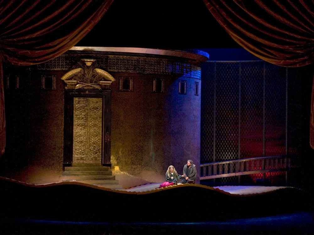 Molto prima, l’«orgia» a palazzo è stata la riunione di una banda di criminali mafiosi dopo un colpo che ha fruttato mazzette di soldi, orologi d’oro e gioielli esposti sul cofano di un’auto per la spartizione. Il volgare luccichio del bottino contrasta con la misera catenina che Gilda consegnerà al suo amato, il quale la getterà per terra dopo la notte con Maddalena. La stessa catenina sarà ritrovata da Rigoletto sul luogo del delitto. La bellissima regia di Michieletto è fatta anche di questi piccoli dettagli.