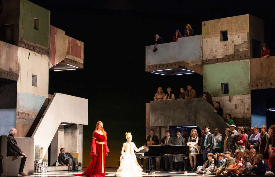 Eccezionale il lavoro dello sterminato cast che rivela doti attoriali di tutto rispetto. Svetta la performance di Dumitru Mîțu, un Grigorij da ricordare per pienezza vocale e interpretativa. Tomasz Konieczny è un Boris di tradizione ma scenicamente efficace, meglio il Pimen di Vitalij Kowaljow, mentre Raehann Bryce-Davis delinea una Marina vocalmente e interpretativamente inappuntabile. Accanto a lei il preciso Rangoni di Gevorg Hakobyan. Di rilievo anche Ya-Chung Huang, un gelido Šujskij, e Shen Yang, sapido Varlaam. Particolare qui la parte dell’Uomo semplice/Santo folle affidata a Odin Lund Biron che convince sia come cantante che come attore. Il Coro dell’Opera Nazionale Olandese si assume con sicurezza il ruolo di personaggio principale dell’opera sotto la sapiente cura di Edward Ananian-Cooper e ottimo anche il coro di voci bianche Nieuw Amsterdams Kinderkoor istruito da Pia Pleijsier. Vasilij Petrenko, alla guida della sempre affidabile Koninklijk Concertgebouworkest, restituisce in maniera coinvolgente la sorprendente scrittura orchestrale di una partitura ricca di atmosfere contrastanti. La versione scelta è quella del 1872 con l’inserimento della scena dell’incoronazione del 1869.