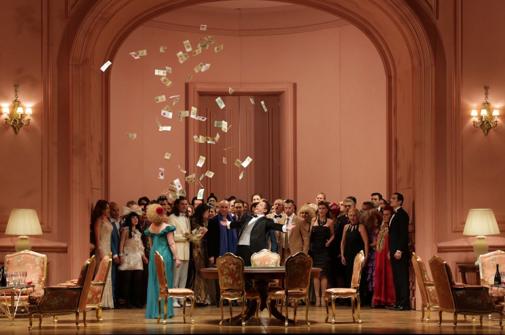 Umbratile, introverso, il carattere di Amleto è stato indissolubilmente legato al timbro di baritono, ma con il registro tenorile il personaggio acquista una maggiore fragilità assieme però a una dimensione di baldanza eroica adatta al brindisi «Ô vin, dissipe la tristesse». Il ruolo non richiede gli acuti spinti in cui eccelle il tenore americano, che qui si può concentrare su un bel suono misto, mezze voci delicate, un fraseggio da manuale e declamati dove ogni parola ha il suo significato espressivo. Specialista del repertorio francese, Osborne sfoggia anche un’ottima dizione. Esaltante è il duetto con la madre, qui Clémentine Margaine, un mezzosoprano di grande temperamento ed eccezionale proiezione vocale con cui delinea il complesso personaggio di Gertrude. Altro pilastro di eccellenza della serata è l’Ophélie di Sara Blanch, che nella attesa e celeberrima scena della pazzia non si trasforma in macchinetta di puri virtuosismi vocali, ma pur eseguendo alla perfezione le agilità richieste mantiene la drammaticità della scena che così non diventa un elemento di discontinuità nel racconto, anche grazie alle scelte registiche di cui parleremo. Riccardo Zanellato è un Claudius corretto ma un po’ incolore, di lusso invece il Laërte di Julien Henric, parte troppo breve per godere del timbro luminoso e della eleganza del tenore lionese. Breve ma decisiva anche quella dello Spettro del re morto, affidata alla voce declinante ma sempre molto personale e qui particolarmente efficace di Alastair Miles. Alexander Marev (Marcellus), Tomislac Lavoie (Horatio), Nicolò Donini (Polonius), Janusz Nosek (Primo becchino) del Regio Ensemble e Maciej Kwasnilowski (secondo becchino) completano il glorioso cast messo insieme per questa produzione. Non ultimo è da segnalare l’esemplare lavoro fatto dal coro, istruito da Ulisse Trabacchin, qui in una delle sue prove migliori.