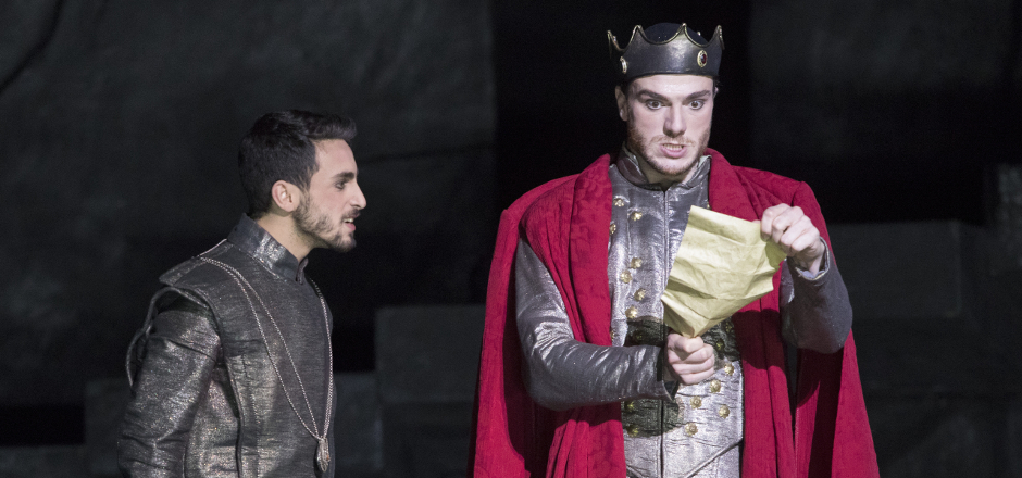 Particolarmente malvagio e infido qui è l’Alphonse XI di Florian Sempey, che fu don Fernando D’Aragona nell’Ange de Nisida: il baritono – l’unico cantante di lingua francese, ma per una volta la dizione è curata in tutti gli interpreti – presta la prepotente presenza scenica e la sua autorità vocale per delineare il complesso personaggio tormentato da pulsioni erotiche e gelosie distruttrici in rotta di collisione con il Balthazar di Evgeny Stavinsky, in nuce il Grande Inquisitore dell’opera di Verdi di quasi quarant’anni dopo. Caterina di Tonno è come sempre bravissima qui nella breve ma importante parte di Inès mentre Edoardo Malletti è un efficace Don Gaspar. Il coro Donizetti Opera è rimpolpato dal Coro Accademia Teatro alla Scala. Diretta da Salvo Sgrò, la giovane compagine si dimostra vocalmente e scenicamente spigliata nel seguire le indicazioni della regista Valentina Carrasco che assieme agli scenografi Carles Berga e Peter van Praet (che si occupa anche delle luci) e alla costumista Silvia Aymonino, allestisce uno spettacolo che si rivela imperdibile.