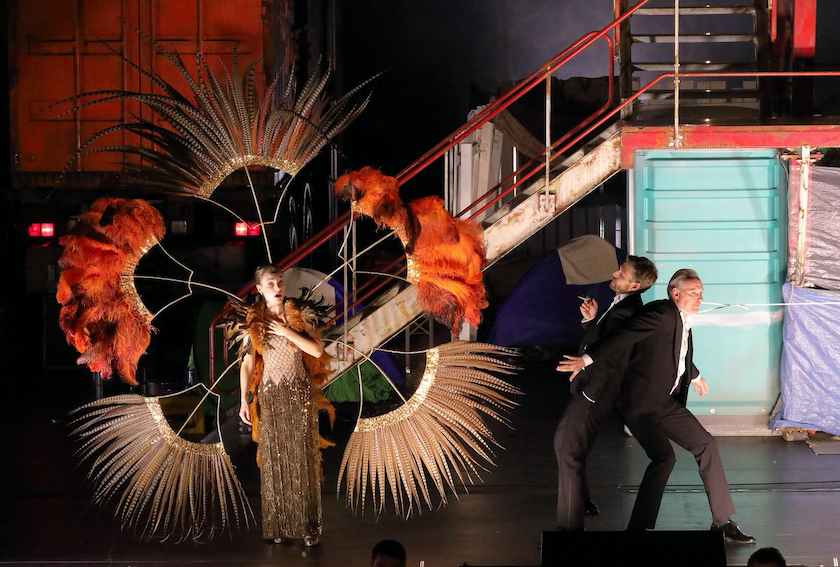 Neanche l’ingenua messa in scena di Darko Tresnjak, i costumi filo-egiziani e i balletti con grande sbattere di braccia a simulare ali fanno il miracolo di convincere e l’interesse per la tenue vicenda si esaurisce con l’ultima nota della peraltro lussureggiante partitura.
