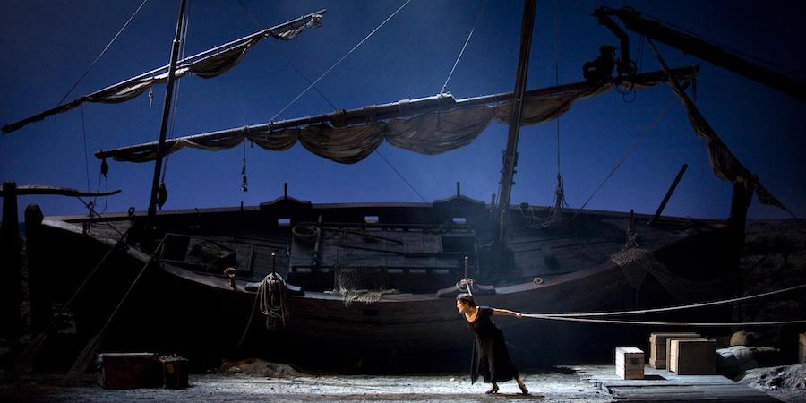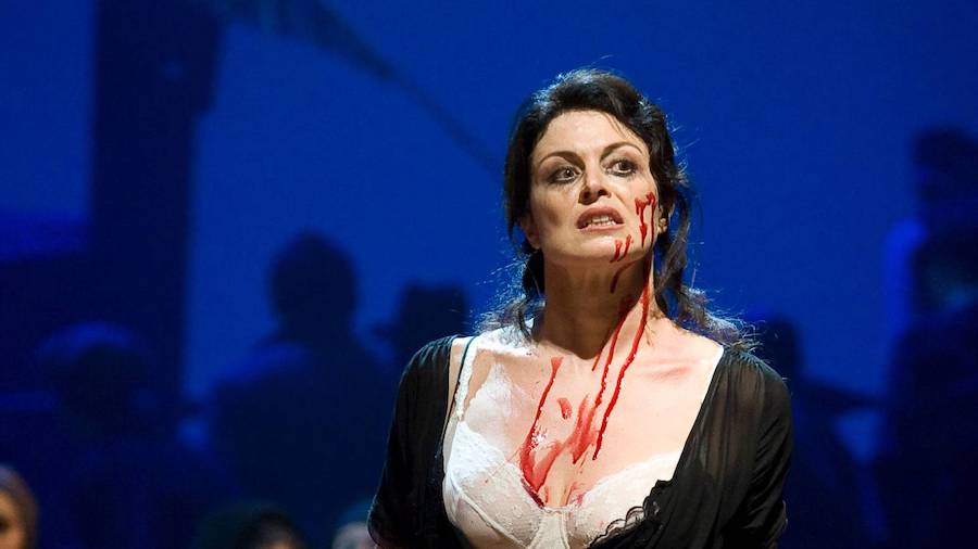 Nel manifesto della prima al Metropolitan Opera House la “special performance – first time on any stage” di The Girl of the Golden West – dove Minnie era Emmy Destinn, Dick Enrico Caruso e il direttore d’orchestra Arturo Toscanini – sono indicati uno stage manager, un chorus master e un technical director, ma non la regia, come era la prassi del tempo. Ora invece i responsabili dell’allestimento hanno il loro giusto peso nell’economia dello spettacolo e i nomi di Valentina Carrasco (regista), Carles Berga e Peter van Praet (scene), Silvia Aymonino (costumi) e Peter van Praet (luci) sono elencati a pieno titolo assieme a quelli degli interpreti sul palcoscenico. La regista di Buenos Aires firma sempre i suoi spettacoli con un’idea forte e questa Fanciulla è presentata come la ripresa di un film western. Il saloon dove si rifocillano i minatori dopo il duro lavoro e la baracca di Minnie sono ambienti isolati nella nudità del palcoscenico trasformato in un set cinematografico dove compaiono macchine da presa, un regista e alcuni assistenti. L’idea non è tra le più originali – la stessa regista l’aveva utilizzata nella sua Tosca a Macerata – ma si giustifica per la fascinazione di Puccini per la nuova musa che in quegli anni sfornava innumerevoli pellicole sull’epopea della “corsa all’oro” nel West americano, anche se la Carrasco pensa agli “spaghetti western” e ai film di Sergio Leone piuttosto che alle lontane pellicole mute e in bianco e nero. Anche Robert Carsen nella sua produzione alla Scala aveva utilizzato una lettura cinematografica, ma con risultati più convincenti. Nello spettacolo della Carrasco su uno schermo che scende dall’alto sono proiettate le immagini che vengono riprese in tempo reale, talora per evidenziare i primi piani dei personaggi oppure per farci vivere la vicenda da una prospettiva diversa, come quella di Dick nascosto nella baracca di Minnie all’arrivo dello sceriffo Jack. L’espediente non è però utilizzato al meglio, l’utilizzo delle camere da presa non ha una sua chiara logica e gli interpreti del “film” si confondono con quelli della “realtà” dell’opera, come quando alla colletta per Larkens partecipa anche il regista o quando alla ricerca del bandito non partono solo i minatori armati di fucili ma anche i macchinisti con i loro martelli e in maniche di camicia sotto la neve… Nel secondo atto la trovata registica è meglio realizzata e risulta più efficace, con il suo gioco di interni-esterni e la nevicata con i fiocchi bianchi sparsi dall’alto e il grande ventilatore. Meglio ancora l’atto terzo quando ci mostra la coppia incamminarsi su una strada verso un futuro più sereno con la citazione del celeberrimo finale di Modern Times di Charlie Chaplin.