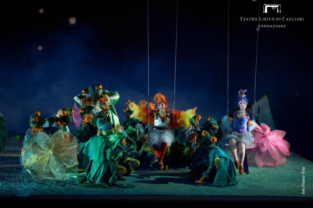 Ora al Lirico viene consacrata definitivamente la destinazione per i “teatri dei grandi” di questo lavoro con una produzione che si basa sulla versione del ’34. Tutto bene se il teatro sardo dimostrasse un po’ più di coraggio nelle messe in scene e anche questa di Leo Muscato non fa molto per convincerci della necessità di certe riesumazioni. Il tono fiabesco è dominante nella scenografia di Giada Abiendi e nei costumi di Vera Pierantoni Giua e un po’ leziosa la recitazione, ma il libretto è quello che è. Numerosi gli inserti danzati di Luigia Frattaroli mentre l’unico momento veramente godibile è il finale, ma qui avevano avuto ragione i curatori tanto criticati della produzione torinese del 1967 in cui il fox-trot fu sostituito dal twist, il ballo allora in voga: per mantenere l’ironica trovata del risveglio dopo il passaggio dei secoli, qui ci voleva qualcosa di più attuale.
