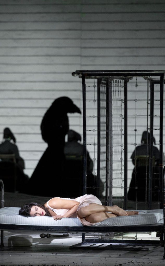 Più convincente è la rappresentazione dei personaggi, a cominciare dalla Buryjovka che non è la patetica e mite vecchina vista in molte rappresentazione: qui è quella che gira con la cassa, gestisce i soldi, fuma, beve e al matrimonio dove tutti sono vestiti di nero, anche la sposa, sfoggia un vaporoso abito bianco! La estroversa personalità di Carole Wilson delinea con grande efficacia il taglio del personaggio nella sua cecità nei confronti dello scapestrato nipote e nella sua punta di malignità nei confronti degli altri parenti. Rôle fétiche per le grandi voci della scena è quello della Kostelnička (la Sagrestana) ripreso qui da Evelyn Herlitzius con una potenza sonora che riempie la sala di suoni violenti per incarnare uno dei maggiori personaggi del teatro del Novecento, una donna dotata di uno «spirito da uomo», rispettata e temuta nel villaggio, autoritaria ma tenera matrigna. Tutta la gamma della sofferenza è presente nella straordinaria performance del temperamentoso soprano tedesco: la tenerezza, l’angoscia, la follia sono espresse con vigore, ma senza esagerazione. Debutta invece nella parte del titolo Corinne Winters e piega le sue doti drammatiche alla parabola espressiva della ragazza che perdona l’uomo che l’ha messa incinta, poi quello che l’ha sfregiata, infine la matrigna che le ha ucciso il figlio, tutte azioni fatte per amore! Il soprano americano si dimostra attrice straordinaria quando da timida adolescente si trasforma nel secondo atto in madre amorevole, per cui ancora più tragica sarà poi la scoperta nel terzo atto della confessione della matrigna. La dolcezza e la precisione dell’emissione connotano la sua interpretazione e la sua fresca presenza scenica della Winters. Anche il personaggio secondario di Karolka è trattato con insolita importanza dalla regista che aggiunge così una quarta personalità femminile al suo affresco. Come per Jano, la sera della prima per motivi di salute le interpreti titolari sono state rimpiazzate all’ultimo momento, ma né Séraphine Cotrez né Clara Guillon hanno fatto rimpiangere la sostituzione.