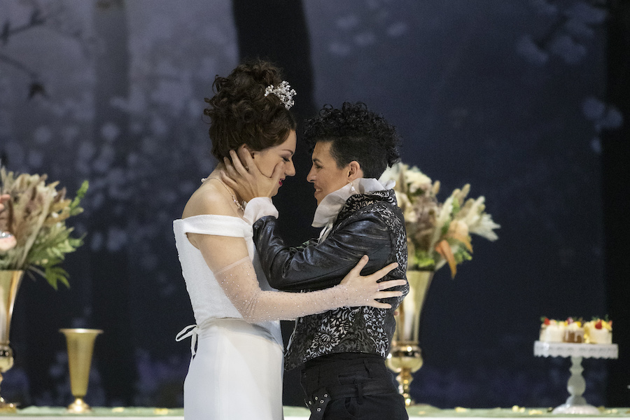 Yuriy Mynenko è un Orlando di solida presenza scenica, bel timbro e grande estensione sfoggiata con agio nella sua prima famosissima aria «Nel profondo cieco mondo». Tocca a lui terminare il secondo atto con un’acrobatica «Ho cento vanni a tergo» di grande intensità mentre nel terzo rende efficacissima la scena della pazzia del personaggio con ariosi e recitativi di alta drammaticità. Arianna Vendittelli, unico soprano dell’opera, è un’Angelica volitiva e dalla voce luminosa che incanta fin dall’aria «Un raggio di speme» con cui si apre l’opera. L’Alcina di Sonia Prina è personaggio a tutto tondo che il contralto magentino rende del tutto simpatico con la sua ironia e una vocalità calda anche se talora un po’ in affanno. La dolcezza di emissione in «Sol da te mio dolce amore» è la qualità massima del Ruggiero di Filippo Mineccia ma la scelta registica non gli rende il massimo dei favori. Si veda per contrasto lo stesso momento come la regia di Ceresa nell’Orlando veneziano del 2018 esalti l’intervento di Carlo Vistoli. Chiara Brunello (Medoro), Loriana Castellano (Bradamante) e Mauro Borgioni (Astolfo) concludono un cast di qualità.