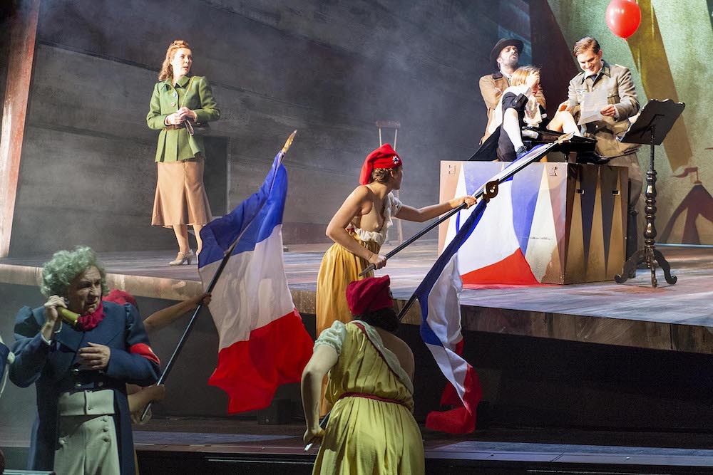 Alla testa della Beethoven Orchester Bonn il direttore Daniel Johannes Mayer dipana le note di una partitura in cui Liebermann utilizza la tecnica dodecafonica molto liberamente e con ironia («C’est de la cacododecaphonie!» si canta a un certo punto), tanto che nonostante la sua modernità non spaventa neppure il più inesperto dei frequentatori dell’opera. In molti punti la musica di Leonore 40/45 assomiglia a una sorta di musica da film, spesso sottolineando l’azione e quando non lo fa rivela qualche lungaggine di troppo. L’influenza di Kurt Weill è lontana, la scrittura di Liebermann è più sulla scia della musica tedesca del primo Novecento, uno Schönberg che non rifugge la melodia, soprattutto nel trattamento delle voci: dal lirico Albert, il bravo tenore Santiago Sánchez, alla vivace Yvette di Barbara Senator, al tono nostalgico degli interventi di Madame Germaine, Susanne Blattert, al padre, Pavel Kudiniov, tutti uniti nel quartetto del prologo modellato sull’analogo quartetto del Fidelio «Mich ist so wunderbar». La parte dell’angelo è quella di Monsieur Émile, deus ex machina con ali nere, una presenza scenica sardonica e una bella prova vocale per il baritono Joachim Goltz.