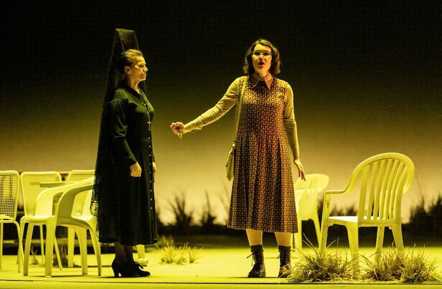 È un Offenbach «che sa di aglio e di sudore», dice il regista di questa sua produzione, e per recuperarne l’originaria impertinenza e carica provocatoria, la ambienta in un universo queer popolato da una variopinta mafia malavitosa in cui regna la fluidità del genere e dove il capo dei briganti Falsacappa ha le fattezze di Divine, la drag queen dei film di John Waters, all’inizio nel famoso abito rosso di Pink Flamingos, accessoriato di pistola, e poi in una varietà di outfit rigonfi e con paillettes. Il travestimento è d’altronde uno degli elementi determinanti in questa vicenda dove i briganti si travestono prima da mendicanti, poi da cucinieri, quindi da nobili spagnoli, infine da carabinieri, e dove il ritratto della promessa sposa al Principe di Mantova, il regno “confinante” con quello di Granada (!), viene scambiato con il ritratto della figlia del capo dei briganti.