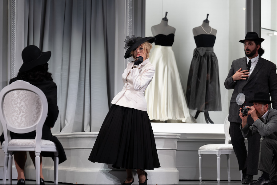 Anche nelle altre scene il palcoscenico brulica di un numero enorme di persone – solisti, coro, ballerini, figuranti – ma ognuno ha sempre qualcosa di speciale da fare, anche solo dimenare il fondoschiena verso il pubblico. Tutti quei movimenti frenetici e brulicanti della folla, avanti e indietro, mentre si indossano nuovi travestimenti, sono minuziosamente gestiti nella loro finta stravaganza. Si aggiungano le coreografie da cabaret di Otto Pichler per completare uno spettacolo trasgressivo e allegramente oltraggioso.