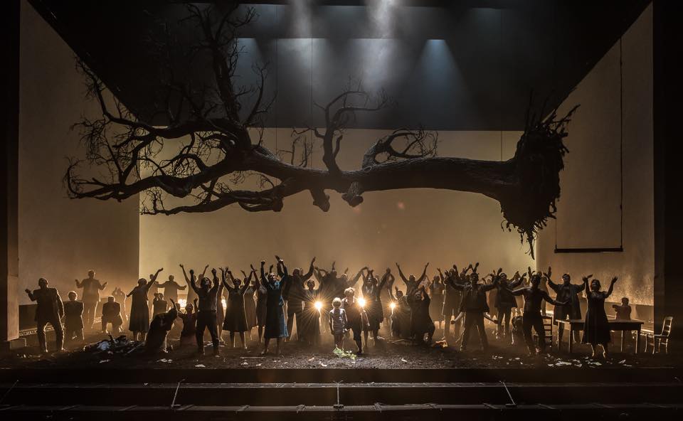 La messa in scena di Ravella come s’è detto è molto semplice, quasi oratoriale, con costumi uniformi e una certa insipidezza visiva che contrasta con l’opulenza della musica. Le immagini che ci propone il regista questa volta sono di scarso impatto drammatico, come nel finale in cui non succede nulla se non la pietra su cui si trova Tell che si alza trasformando l’eroe in una statua sul piedistallo. C’è chi preferisce una regia rinunciataria a una velleitaria, ma una via di mezzo è sempre preferibile.