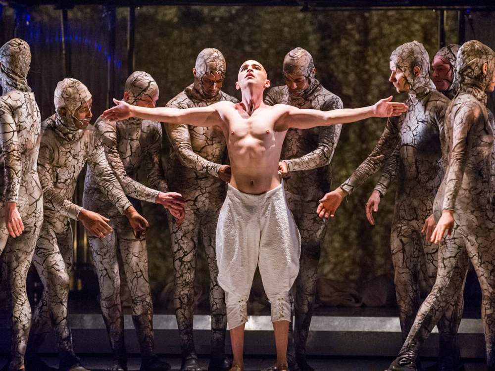 Michieletto rinuncia a una lettura nostalgica e realistica della vicenda, dandone invece una spoglia e in parte simbolica: in scena vediamo un gonfiabile dorato a forma del logo del dollaro mentre grosse lettere luminose montate su rotelle formano parole come miracle o America, parole a cui però nessuno crede più. La fiaccola della Statua della Libertà giace a terra a pezzi, quella statua che oggi innumerevoli cartoonist americani disegnano disperata, piangente o con la valigia in mano per scappare da quella che una volta era la «Land of the free, home of the brave», come recitano i versi di The Star-Spangled Banner, l’inno nazionale U.S.A. Durante la sarcastica Gee, Officer Krupke Michieletto ci regala un numero “alla Kosky” quando il suddetto poliziotto entra in scena con una gran testa di cartapesta assieme alle sagome in cartone delle altre figure richiamate nella canzone. Il gusto amaro del sarcasmo sembra permeare anche il messaggio di pace e tolleranza di quest’opera alla luce di quanto avviene oggi, tingendolo di una certa mestizia.