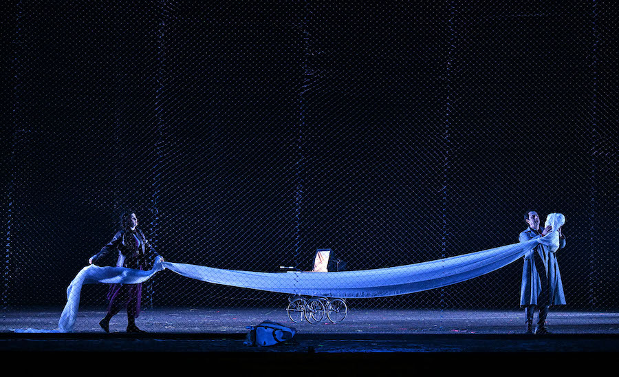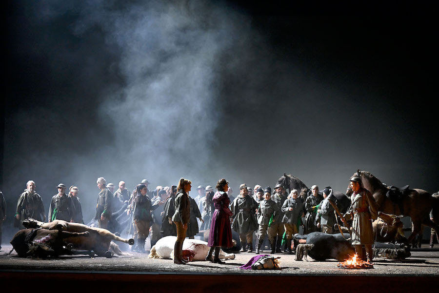 Cast di eccezione dominato dalla intensissima Elisabetta di Asmik Grigorian che debutta e ne fa uno dei ruoli più splendenti della sua luminosissima carriera. «Tu che le vanità» sono dieci minuti di canto intensissimo e regale che coronano una performance sconvolgente. Molto bene anche il mezzosoprano Ève-Maud Hubeaux, splendida Eboli qui a Vienna in tempo di pandemia e a Ginevra l’anno scorso, figura dalla magnetica presenza scenica e vocale che, dopo una maiuscola interpretazione della Canzone del velo con tutti gli abbellimenti richiesti, ha consegnato un «O don fatale» festeggiatissimo dal pubblico. Magnifico anche il sensibile e umano Posa del baritono Étienne Dupuis mentre troppo teso e fuori stile il Carlo di Joshua Guerrero. Gloriosamente ben delineato il Filippo II di Roberto Tagliavini e giustamente minaccioso il Grande Inquisitore di Dmitrij Ul’ianov, Filippo II l’anno scorso a Ginevra.