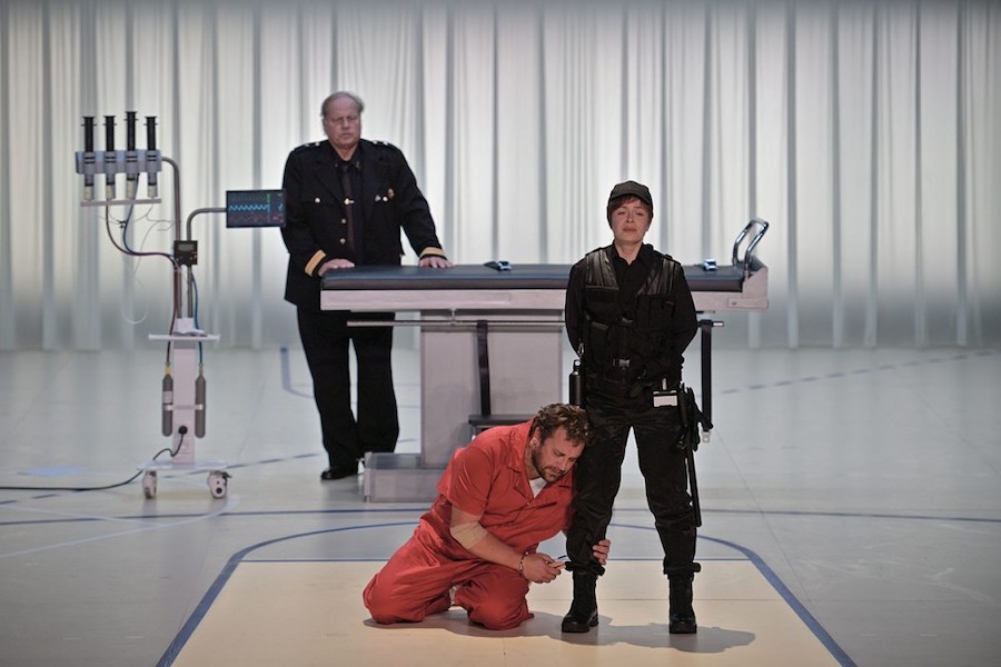 Il regista svizzero Georges Delnon non va per il sottile con la sua messinscena nel mettere in luce la perversione del potere, ma il tema era già presente nell’opera senza bisogno di sottolinearlo a questo modo e la sua lettura non aggiunge molto alla potenza della denuncia. La mancanza di regia attoriale e la schematicità delle psicologie alterate dei personaggi rendono lo spettacolo greve e monotono, non aiutato dalla scena fissa disegnata da Kaspar Zwimpfer o dalla ingenuità dei video.