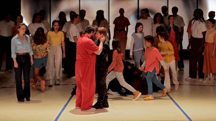 Siamo infatti nel Fidelio, in una produzione che vede Cyril Teste alla messa in scena dell’unica opera di Beethoven. Come era già avvenuto nel suo precedente spettacolo qui alla Salle Favart, l’Hamlet di Thomas, l’artista di Carpentras, che è passato dalle arti visive alla regia lirica, fa dell’aspetto visuale l’elemento centrale della sua lettura con un operatore di steady cam in scena che tallona i personaggi rubando loro dettagli facciali espressivi che vengono proiettati ingigantiti sugli schermi. Cosa già vista molte volte e che qui ha un’invadenza ancora maggiore del solito che la ripresa televisiva mitiga, ma che dal vivo doveva essere ancora più fastidiosa. Il dominio delle immagini è totale: quando Leonore minaccia Don Pizzarro, non lo fa con un revolver, bensì con una macchina da ripresa!