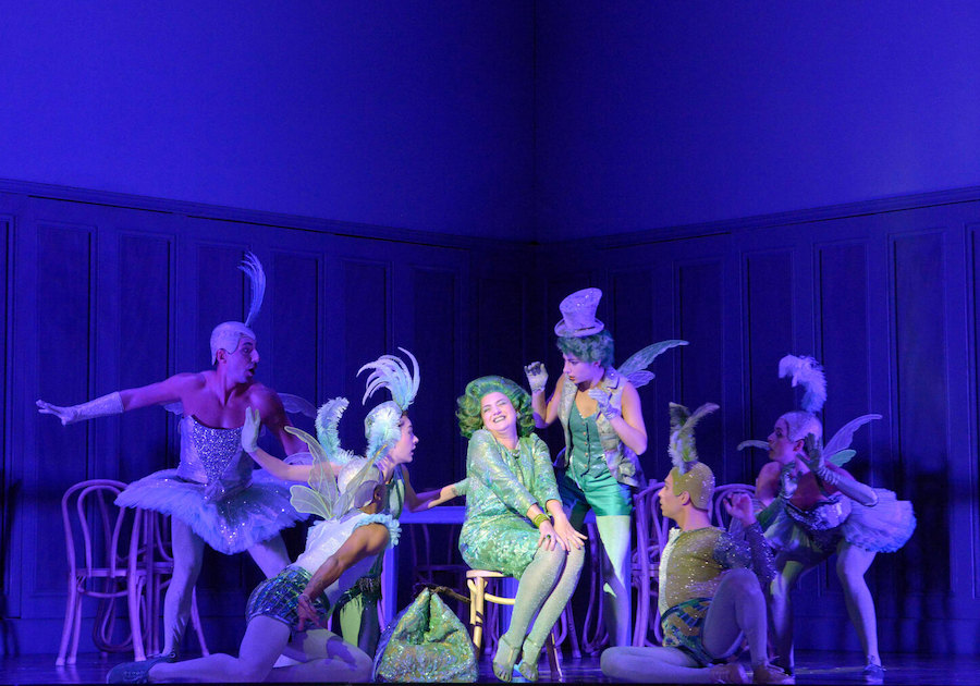 La regia di Denis Podalydès è sobria, intelligente, essenziale, niente colossi scenografici. Éric Ruf costruisce una piattaforma girevole, nuda, con pochi elementi maneggiati da due servitori in bombetta, usciti da una cave di esistenzialisti della Parigi 1950 o da un quadro di Magritte. Una corona di lampadine cala o si inclina, un simbolismo minimo, ma efficace. I costumi di Christian Lacroix – l’haute couture che flirta con il Secondo Impero – riportano l’azione all’epoca della composizione, senza leziosità da cartolina e con efficacia: nella notte di Walpurga le streghe si liberano dei loro cenci neri dando vita a un’orgia di colori nel palazzo delle regine del passato.