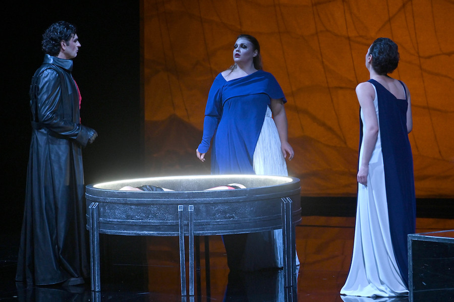 E poi ci sono i cantanti. Non avevo mai sentito Gilda Fiume prima d’ora e non pensavo che nascosta da qualche parte ci fosse una Norma perfetta. E invece c’è e dobbiamo ringraziare il direttore artistico Sebastian Schwarz per averla scovata e avercela portata. La sua non è una Norma al calor bianco, anche se di temperamento comunque ne ha. La Fiume è soprattutto una belcantista che esprime con la purezza della linea del canto, come un levigato marmo canoviano, le violente passioni che agitano la Medea belliniana. Il suo «Casta diva» è una lezione di tecnica vocale – fiati, mezze voci, legati, proiezione degli acuti – non fine a sé stessa, ma votata alla esaltazione della sublime bellezza di questa scena. Tutte le sfumature della donna innamorata e poi tradita, della madre che guarda i figli con uno sguardo che la spaventa e della sacerdotessa che si sacrifica, scorrono con il fiume in piena della sua voce, un fiume che rimane sicuro tra gli argini. Le è al fianco un altro personaggio femminile tormentato, Adalgisa, qui affidato alle sicure doti vocali e interpretative di Annalisa Stroppa, non bellissimo il timbro, ma fraseggio e intensità espressiva impareggiabili.