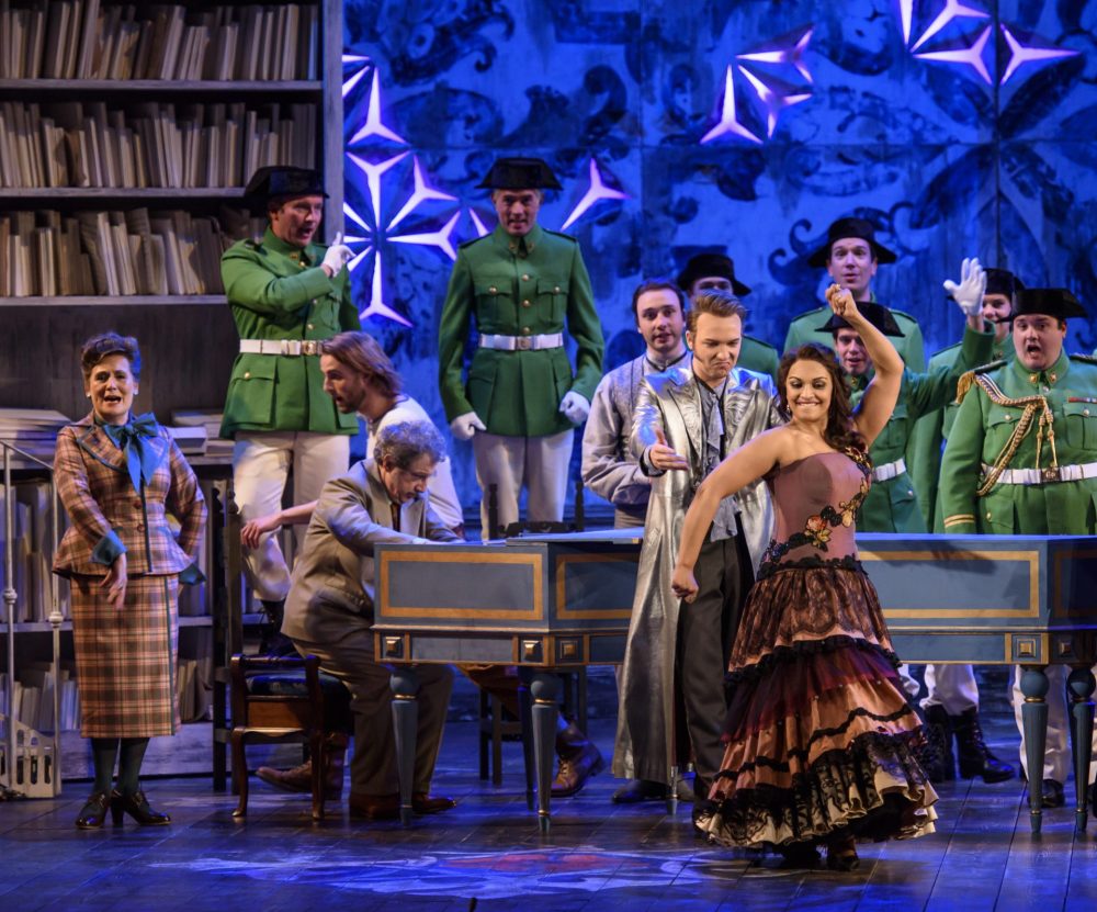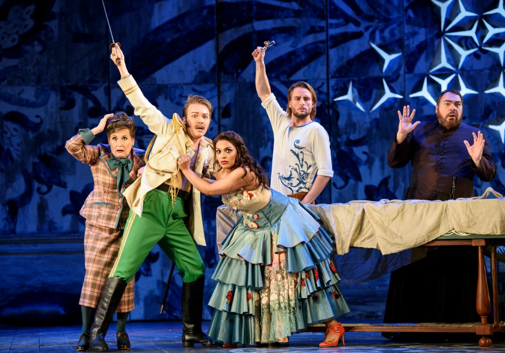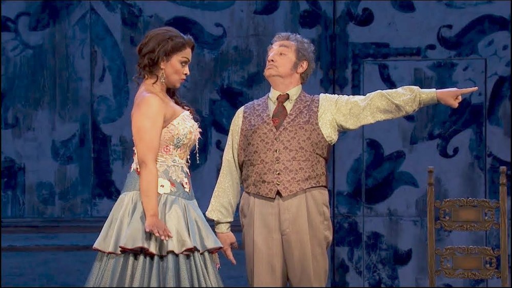 Marcellina qui non è una vecchia megera, ma una piacente signora, forse un po’ troppo giovane per essere la madre di Figaro, e Bartolo un invalido che durante la sua aria cade dalla sedia a rotelle ed è poi vittima del battibecco tra Susanna e Marcellina sulla porta. Scopriremo che anche Don Curzio ha una menomazione, poiché non vedente. Barbarina e le villanelle sono invece delle lugubri educande che sarebbero di casa a Bly, l’ambiente del Giro di vite di Britten.