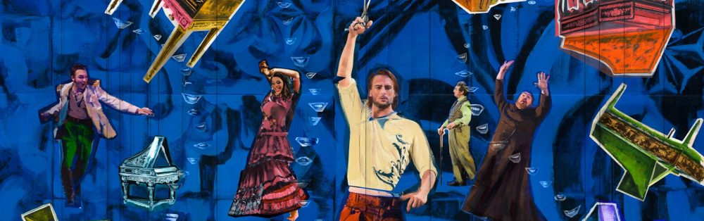Si alza il sipario e ci troviamo nell’atrio di un palazzo neoclassico un po’ trasandato con una scalinata a tripla rampa che porta al piano nobile. Tre coppie sono cristallizzate in una posa fissa e dal finestrone di sinistra entra Cherubim, un’invenzione del regista: un giovane vestito alla marinara e acrobata provvisto di alucce di piume bianche che è l’esternalizzazione dell’eros motore della vicenda, una figura surreale che è spesso in scena per dare impulso ai personaggi e che nell’estesissimo e meraviglioso finale secondo traccia sulla parete il complesso diagramma dei rapporti su cui si fonda la vicenda.