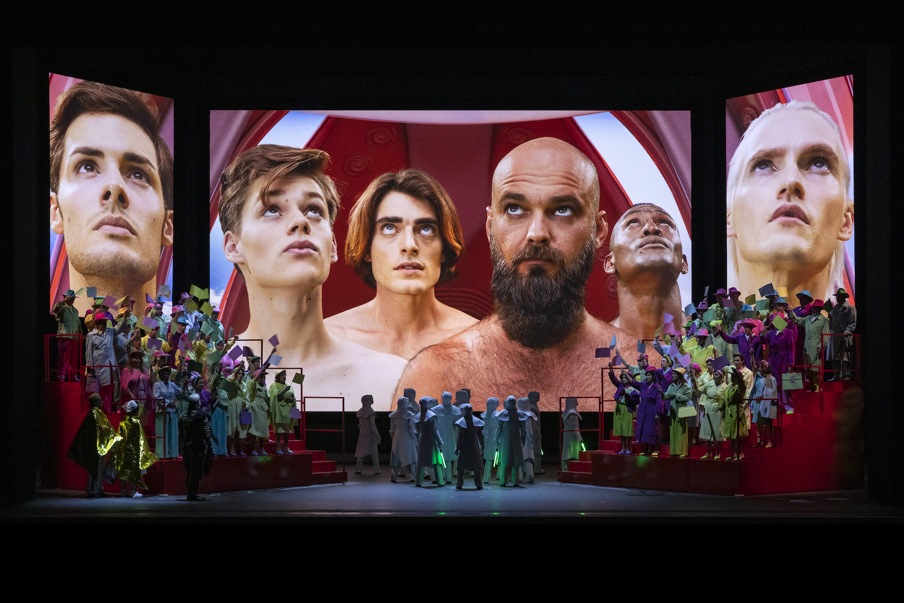 Nella sua messa in scena Ai Weiwei mescola elementi della cultura popolare cinese con quelli del mondo occidentale – cartoni animati, pitture vascolari, La pietà di Michelangelo… – per esprimere l’inestricabilità della globalità che viviamo. Turandot diventa un manifesto di protesta ma tutto questo profluvio di immagini, che rispecchia il bombardamento di notizie che stiamo subendo, sulla scena finisce per distrarre dalla musica. Come il decorativismo di Zeffirelli aveva prevalso sulla drammaturgia, qui nella Turandot di Ai Weiwei è il Konzept a prevalere, senza riuscire a fornire una drammaturgia convincente all’opera di Puccini. In fondo lo scopo sempre quello è.