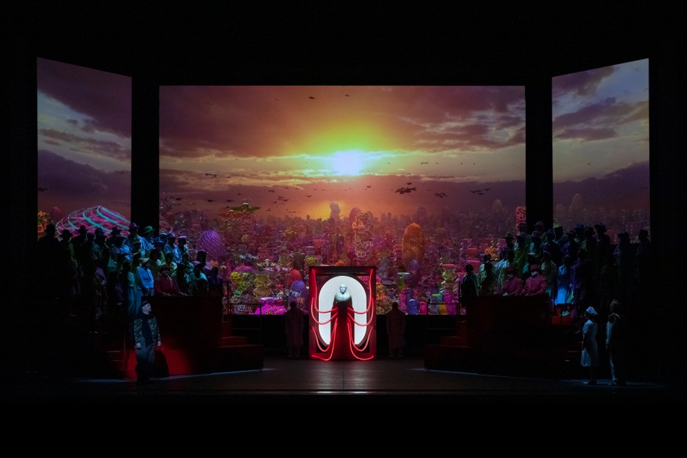 Il Teatro dell’Opera di Roma si tinge dei colori della bandiera ucraina, quelli del cielo sereno e dei campi di grano dorato. La facciata piacentiniana è illuminata da luci azzurre e gialle mentre all’interno i due responsabili della produzione sono una direttrice d’orchestra nata nel paese martoriato e un regista dissidente cinese che ha vissuto sulla pelle la repressione culturale nel suo paese. Anche l’interprete principale è nata in Ucraina. In scena una vicenda di immotivata violenza e crudeltà, il supremo sacrificio di sé per il prossimo e una massa manipolabile. Se qualcuno aveva ancora dubbi sull’attualità del teatro in musica…