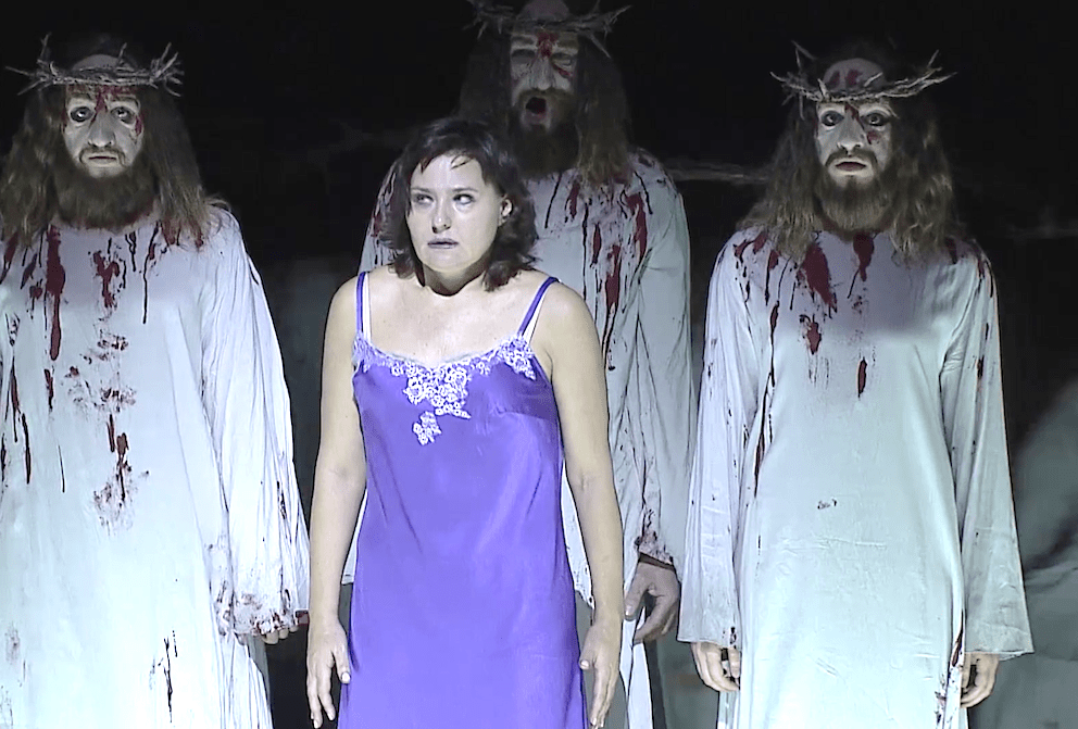 Nella lettura di Treliński magia, misticismo e satanismo sono del tutto assenti: i riferimenti sono più legati alla nostra epoca, con Glock che diventa un pusher che trasforma i deliri mistici di Renata e di Ruprecht in trip psichedelici, e con l’inquisitore enigmatico direttore di un pensionato femminile, mentre drag queen e cowboys sorridenti con chitarra fanno parte di quel Midwest americano anni ’50 che qui ha soppiantato la Germania cupa del XVI secolo. Così però i momenti soprannaturali e l’esorcismo perdono di intensità e la rivolta delle ragazze che gettano per aria cuscini e materassi non ha né il significato né la forza sconvolgente delle monache possedute dal demonio del libretto originale. Qui si tratta solo di un flashback di Renata che ricorda i suoi trascorsi in collegio dove a otto anni vide nel direttore l’angelo di fuoco che l’ha poi ossessionata per il resto dei suoi giorni. L’impossibilità di renderla realisticamente o in maniera fedele (?) al libretto fa di quest’opera la più adatta a stimolare chi deve metterla in scena. Ecco il perché del suo successo nei teatri lirici negli ultimi anni.