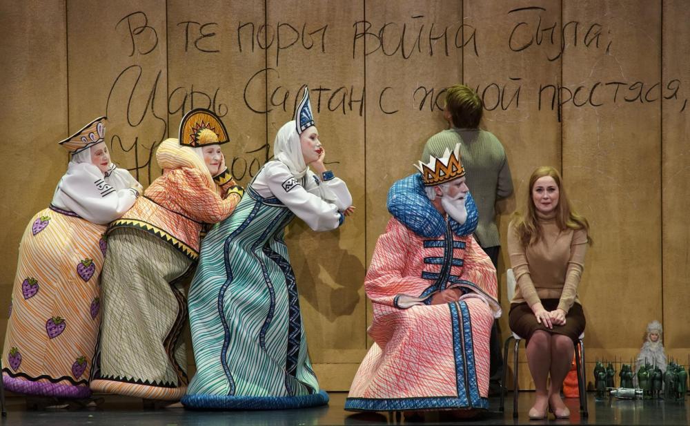 Nel febbraio 2012 Dmitrij Černjakov mette qui in scena uno spettacolo drammatico, intenso e visivamente affascinante. Il regista pone subito in evidenza il contrasto tra il primo e il secondo atto dell’opera. Nel primo tre grandi alberi e una casuccia tra le erbe alte ci introducono nel mondo sereno di Fevronija e anche se qui gli animali con cui dialoga la fanciulla sono interpretati da umani, l’atmosfera ha la magia della natura benigna. Ma già l’arrivo minaccioso dei cacciatori, che con le loro torce fendono il buio, porta a un cambiamento di tono che si inasprisce nel secondo atto. Invece che in «una strada con bancarelle del mercato (…) con locanda e domatore d’orso», siamo in una Russia più attuale: l’interno di un locale dove la fa da padrona ogni bevanda, purché alcolica. I buffi movimenti dell’orso ammaestrato qui sono le provocazioni e i lazzi blasfemi dell’ubriacone Griška da tutti sbeffeggiato e i Tatari, i nemici sconosciuti, hanno qui le minacciose sembianze di una squadra di teppisti/terroristi che seminano violenza e morte tra i convenuti.